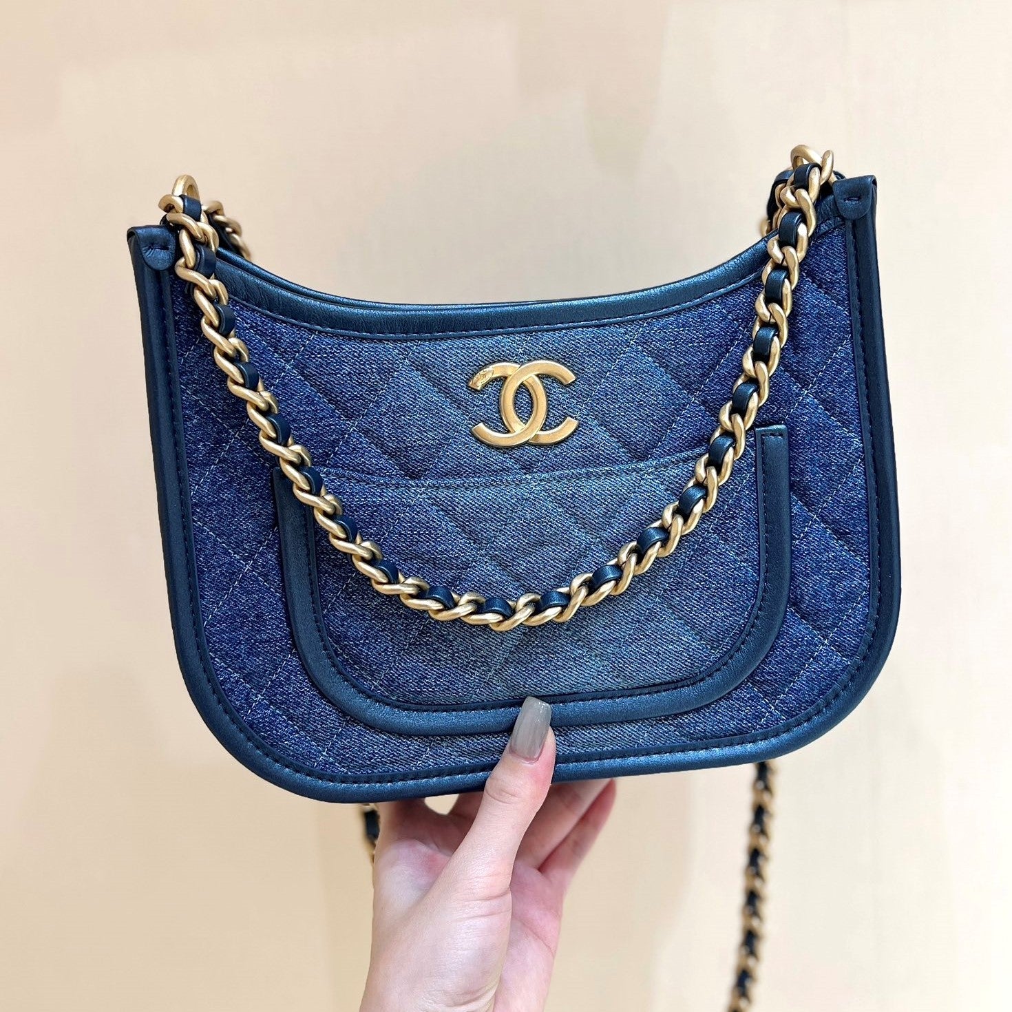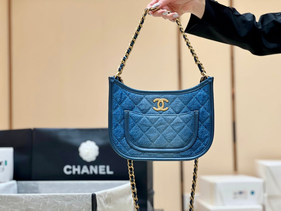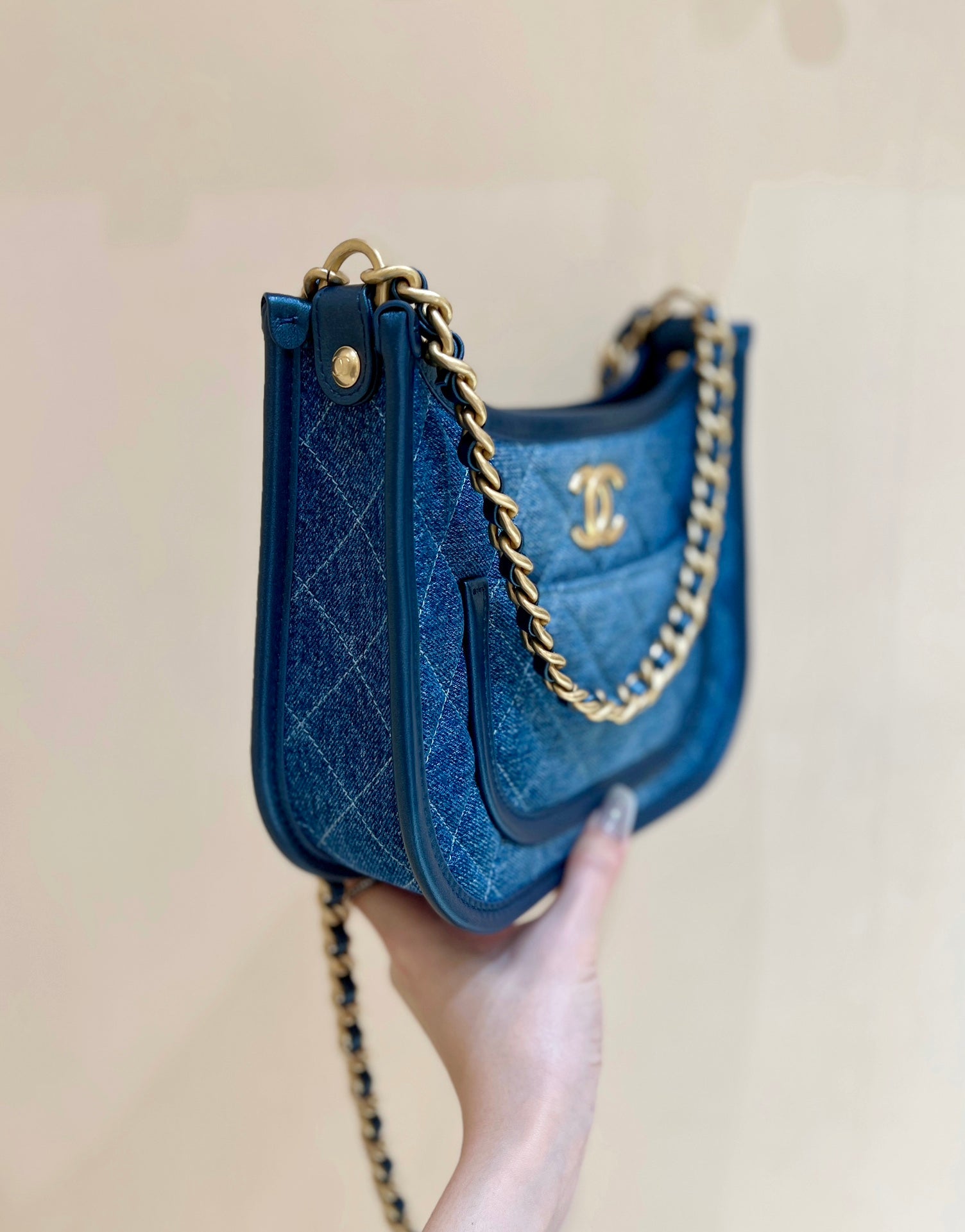 CC 24S AS4666 Shoulder Bag 24cm Blue Denim Light GHW