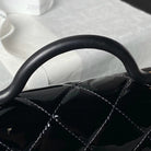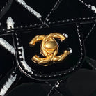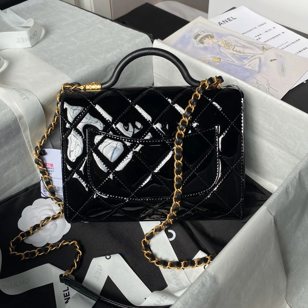 CC 25S FLAP BAG 21 CM IN BLACK PATENT LAMBSKIN WITH TOP HANDLE