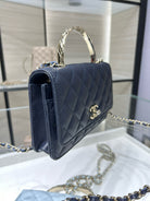 cc 25S Woc Top Handle 19cm Dark Blue Grained Calfskin Light Gold Hardware