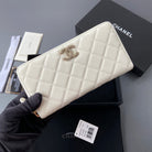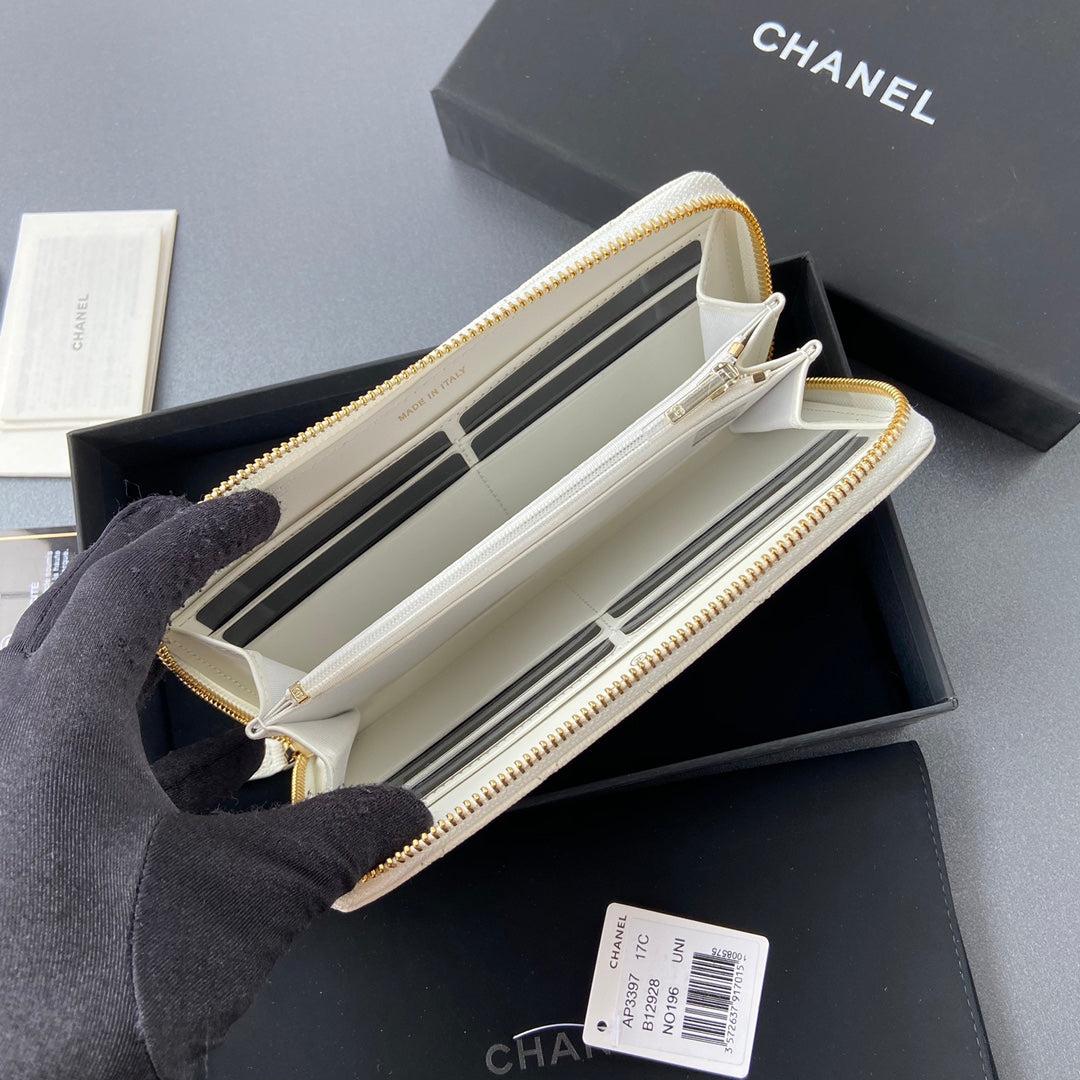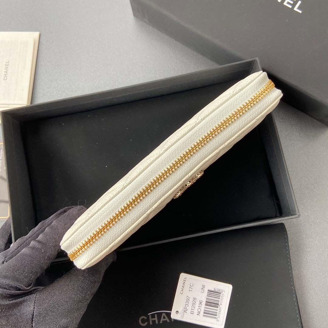CC A3185 Long Zipper White Caviar Diamond Hardware 229636