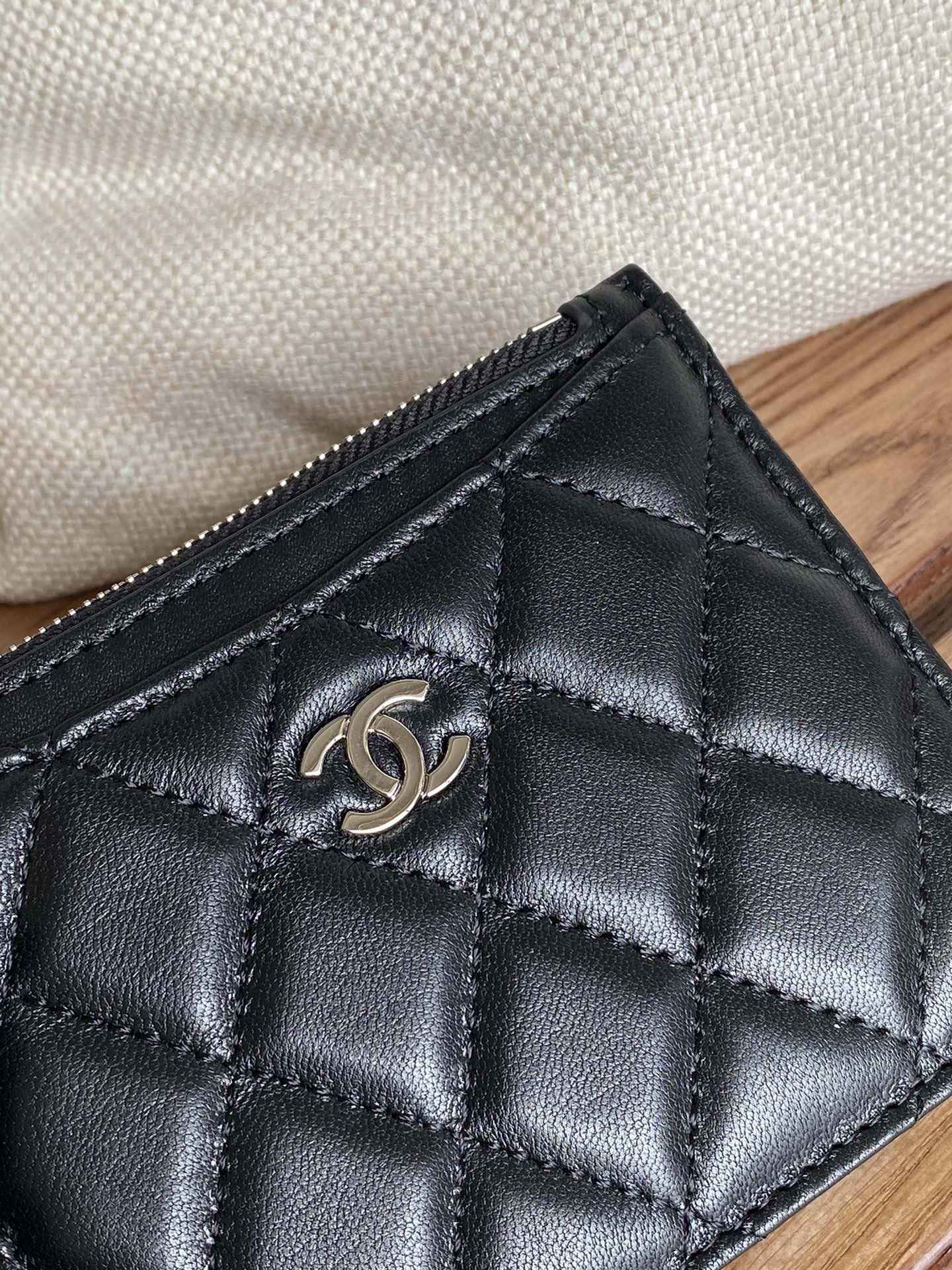 CC A84105 Coin Case Black Sliver Metal Lamskin 240725
