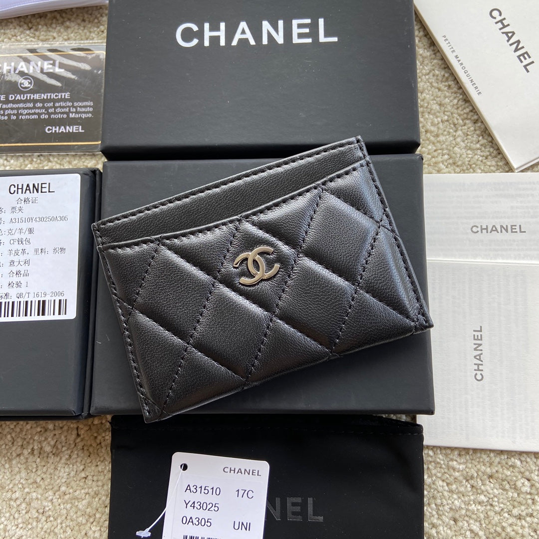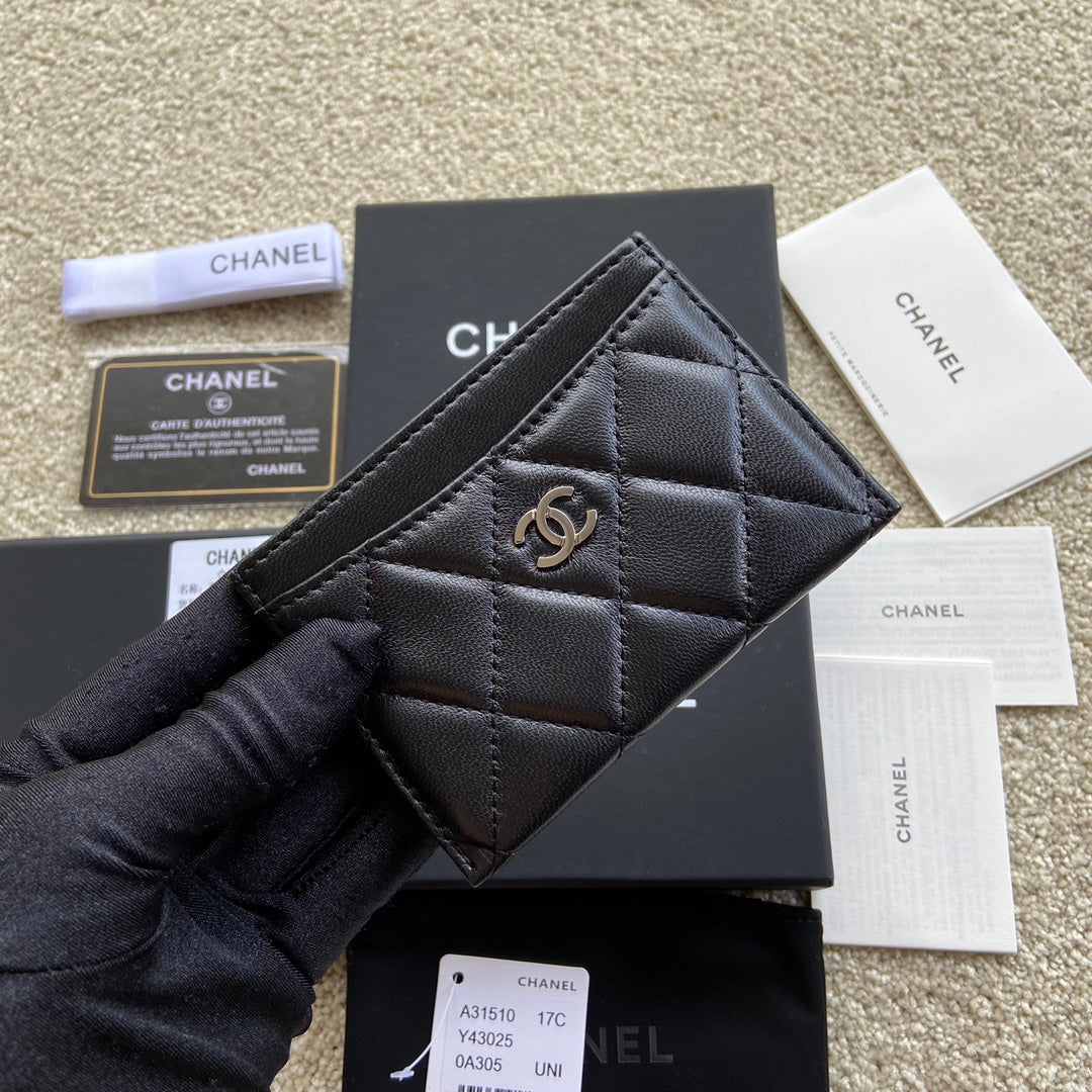CC Classic Card Holder Black Sheepskin Sliver Steel 173997
