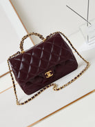 CC Flap Bag With Top Handle 25cm Wine Red Sheepskin Gold Hardware 238481