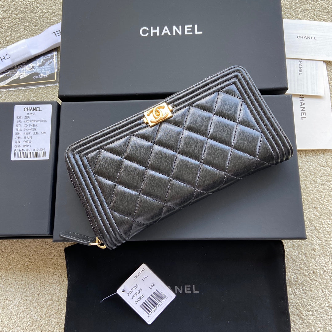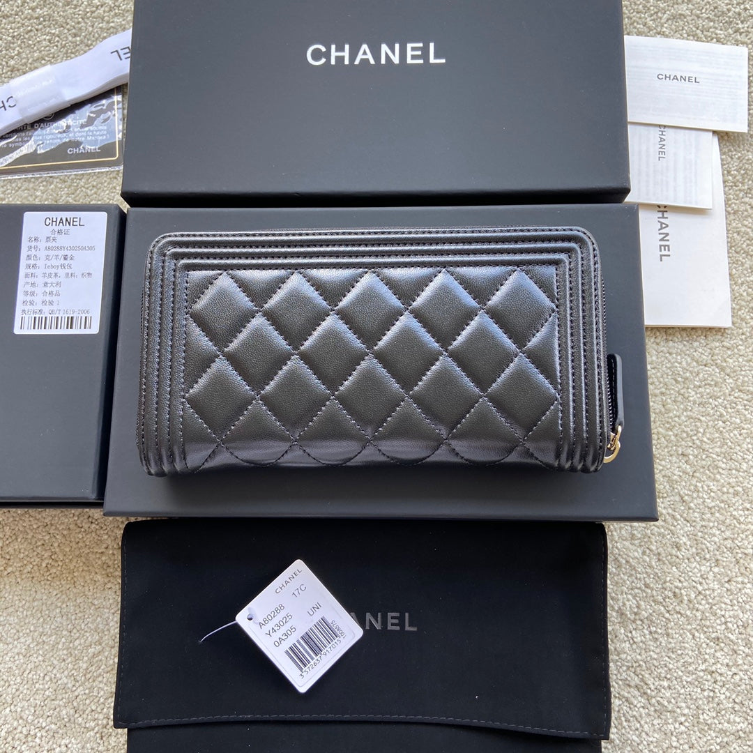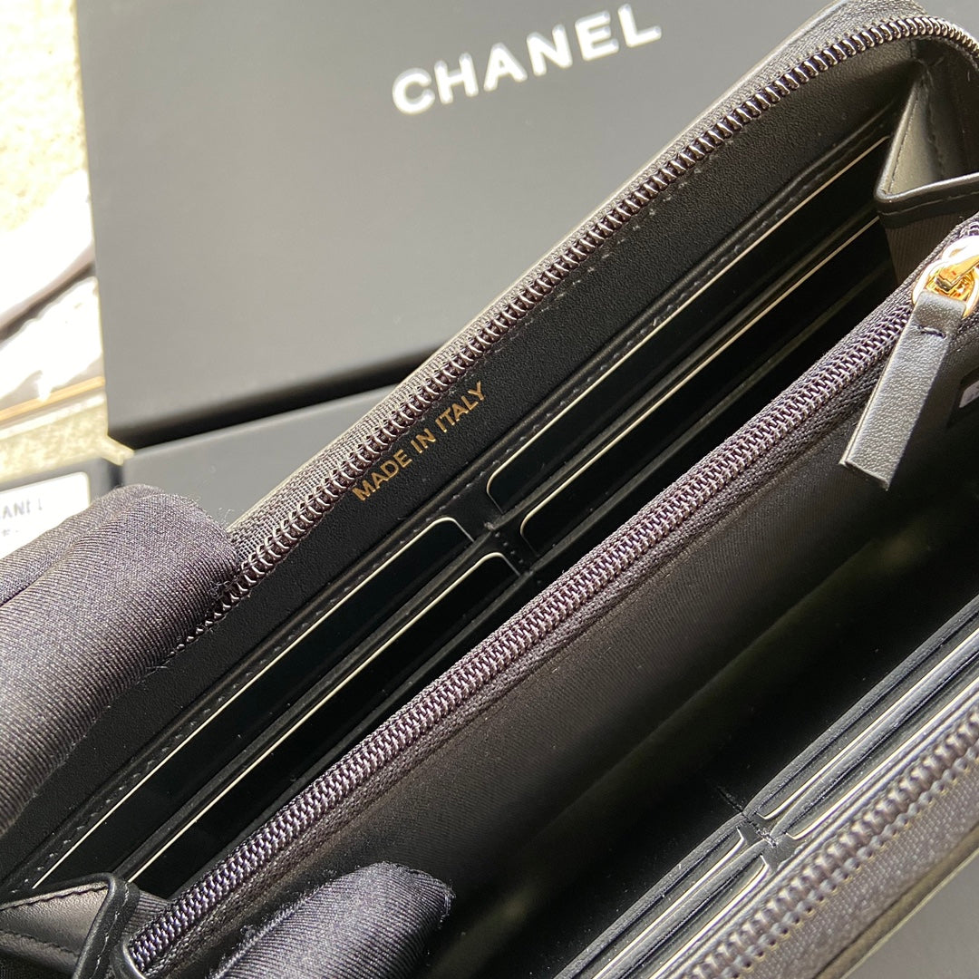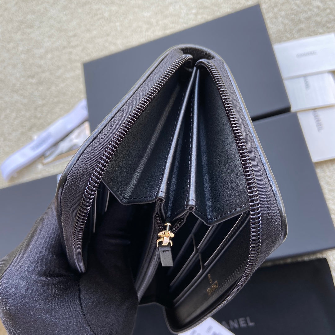 CC Gold Buckle Boy Zipper Coin Wallet Black Sheepskin 229737
