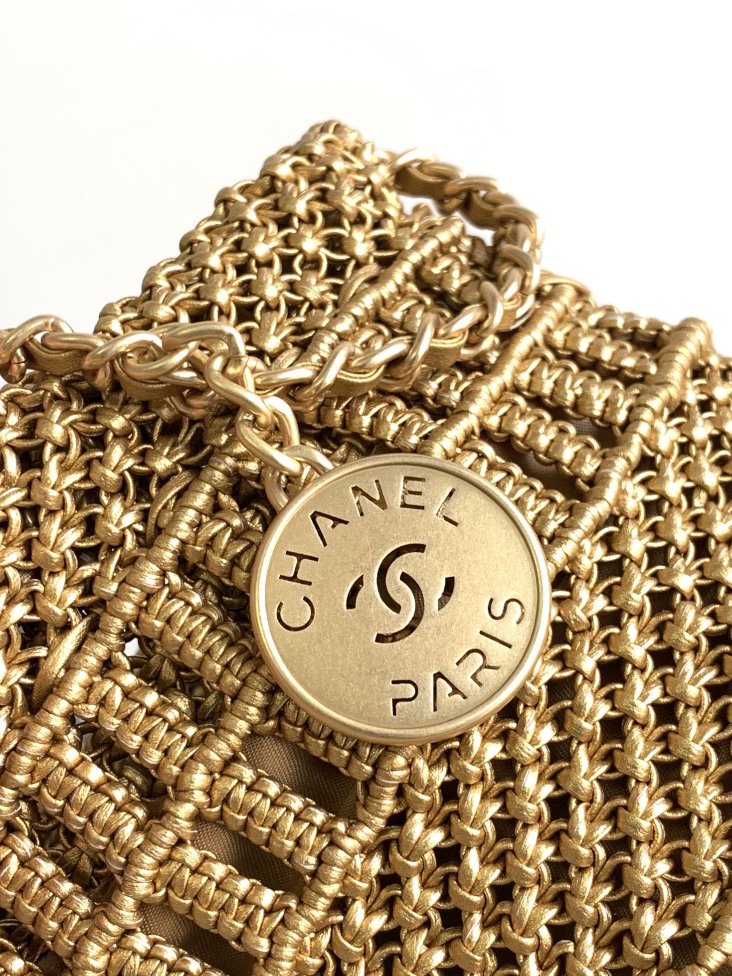 CC Mini 22 Bag 23cm Gold Woven Cowhide Bag