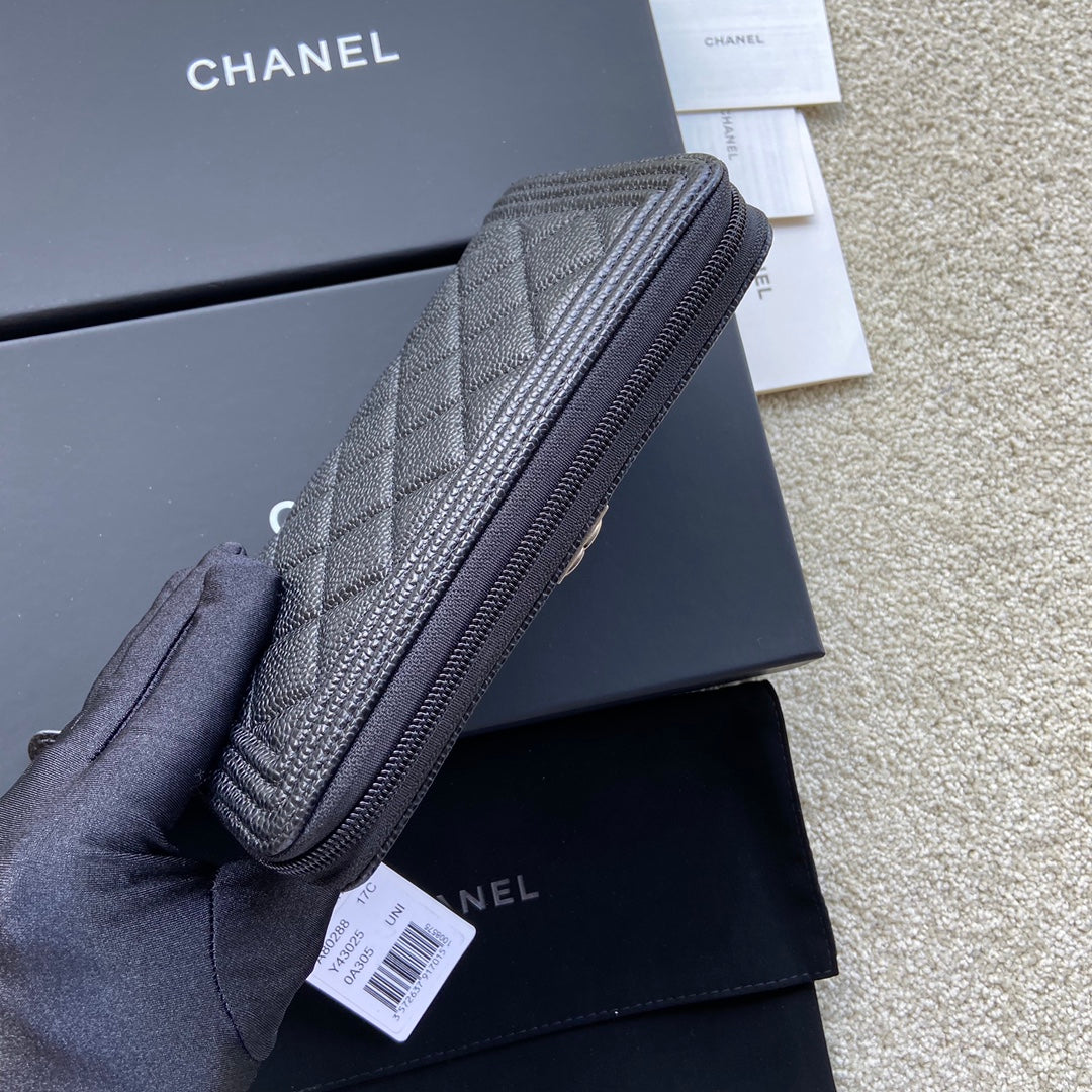 CC Sliver Buckle Boy Zipper Coin Wallet Black Caviar 229743