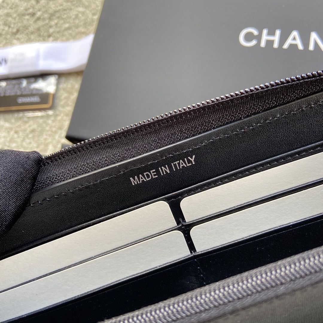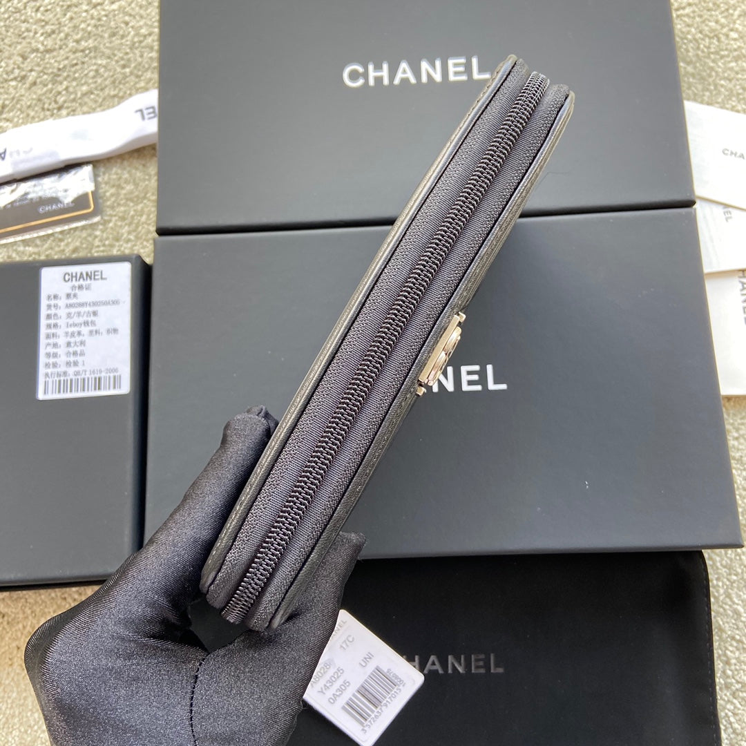 CC Sliver Buckle Boy Zipper Coin Wallet Black Sheepskin 229741