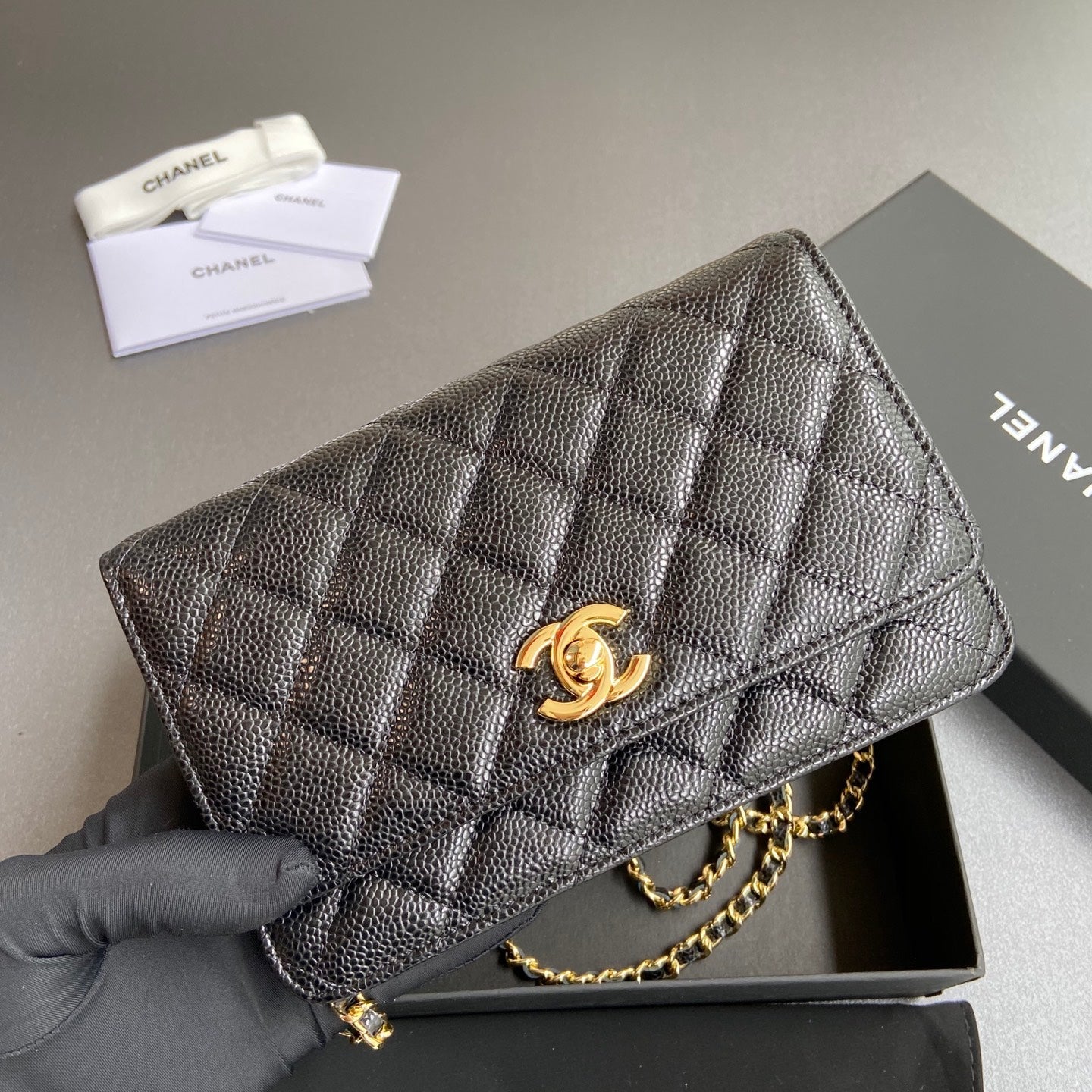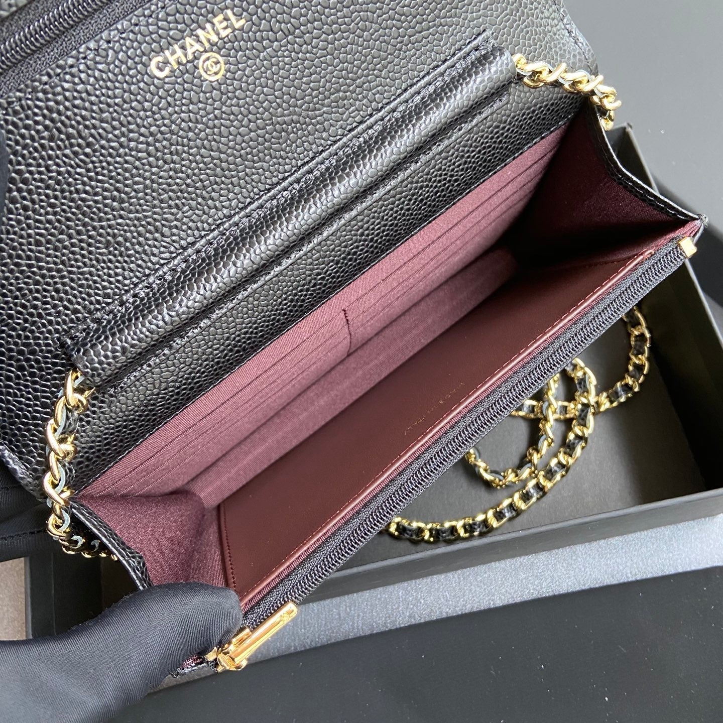 CC Wallet On Chain 20cm Black Caviar Leather Gold Hardware 240164
