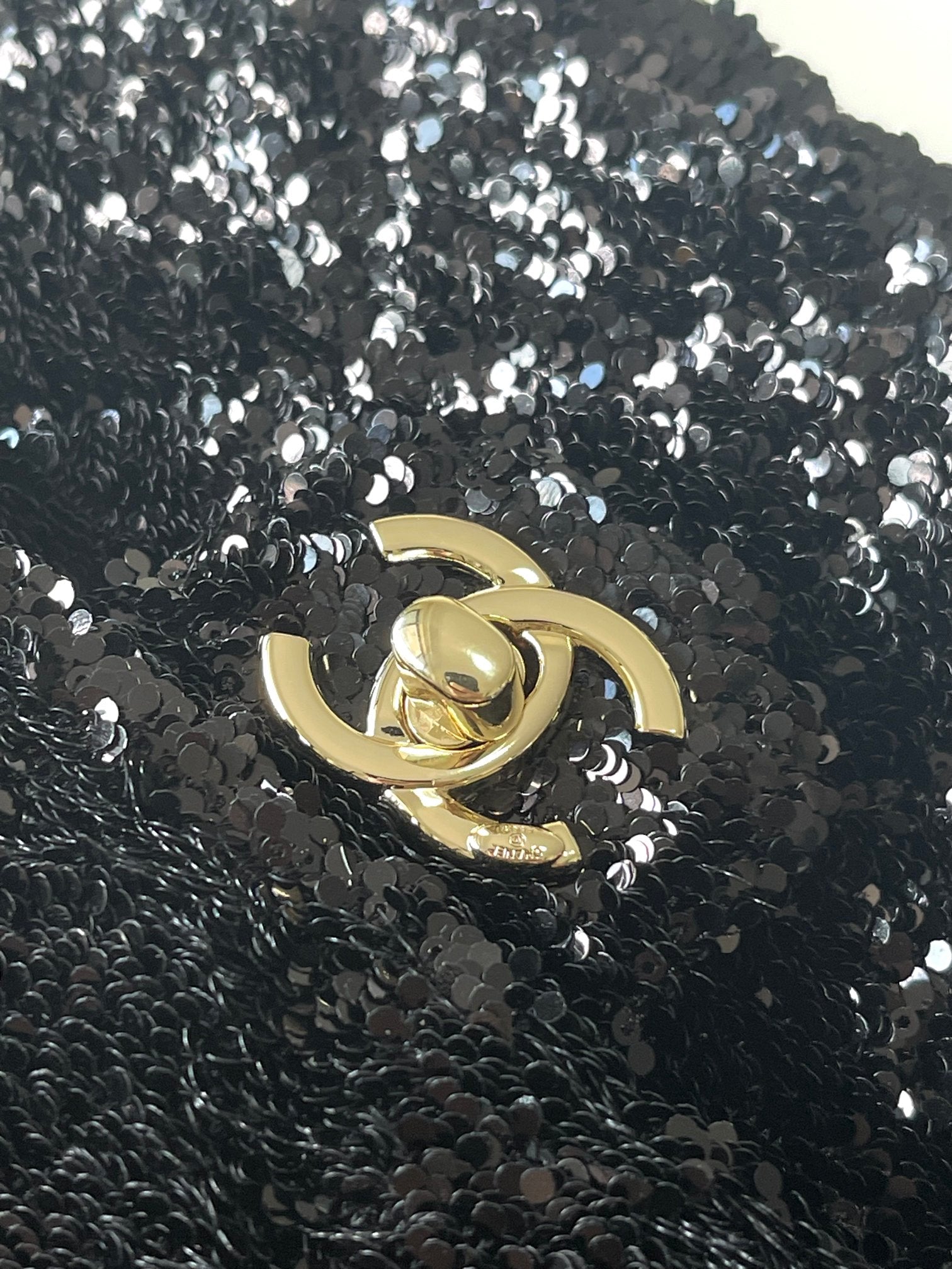 Chanel 25 Sequin Embroidered 21cm Bag Black Leather Sequins 286173