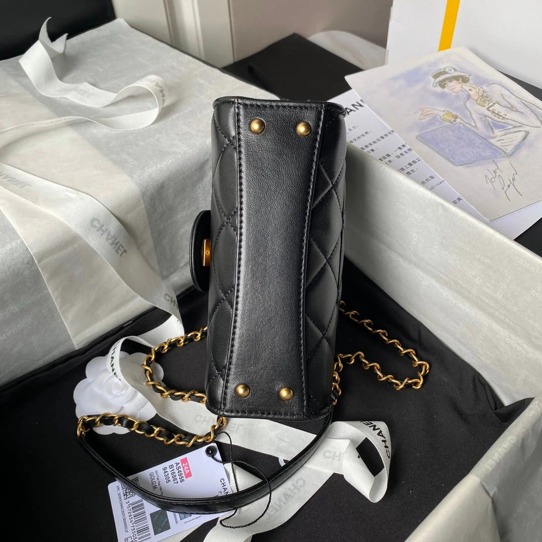 CC 25S FLAP BAG 18 CM IN BLACK LAMBSKIN WITH TOP HANDLE