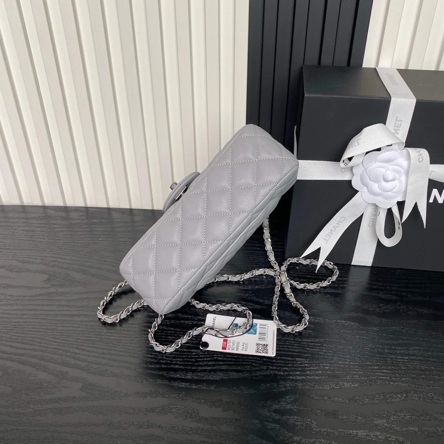 CHANEL 25S FLAP BAG 19 IN CHARCOAL GRAY CALFSKIN SILVER HARDWARE