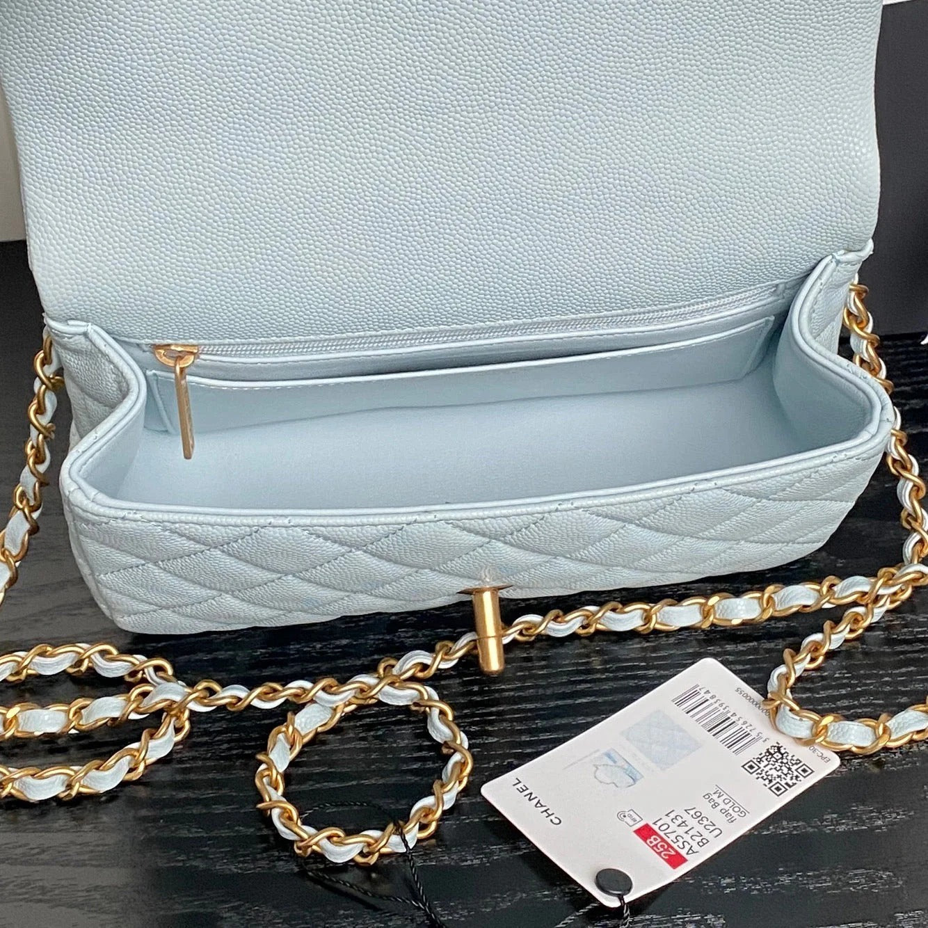 CHANEL 25S FLAP BAG 19 IN LIGHT BLUE CALFSKIN GOLD HARDWARE