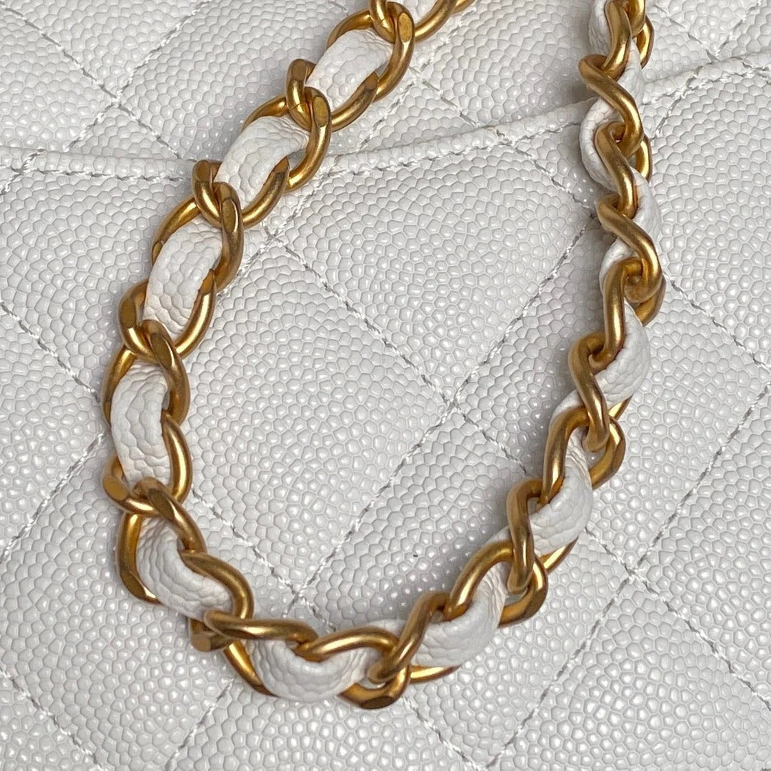 CHANEL 25S FLAP BAG 19 IN WHITE CALFSKIN GOLD HARDWARE