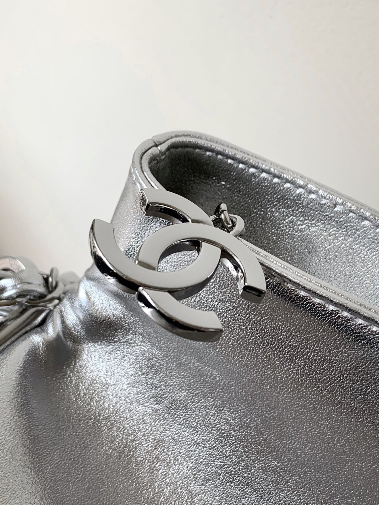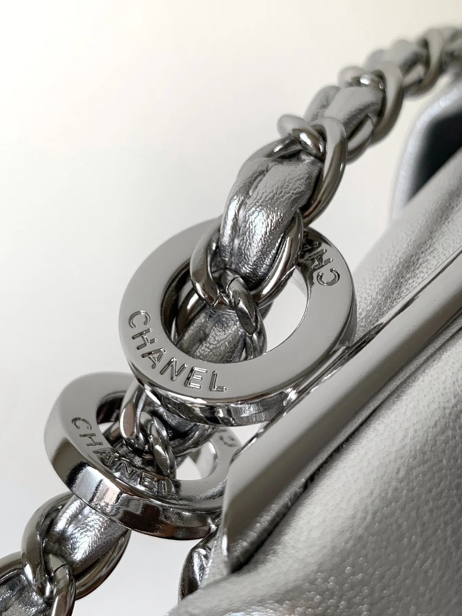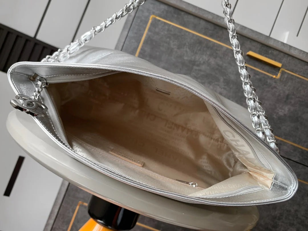 CHANEL 25S HOBO BAG 40 CM IN SILVER SMOOTH CALFSKIN