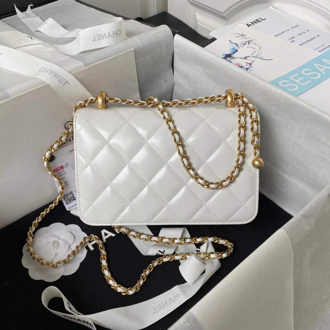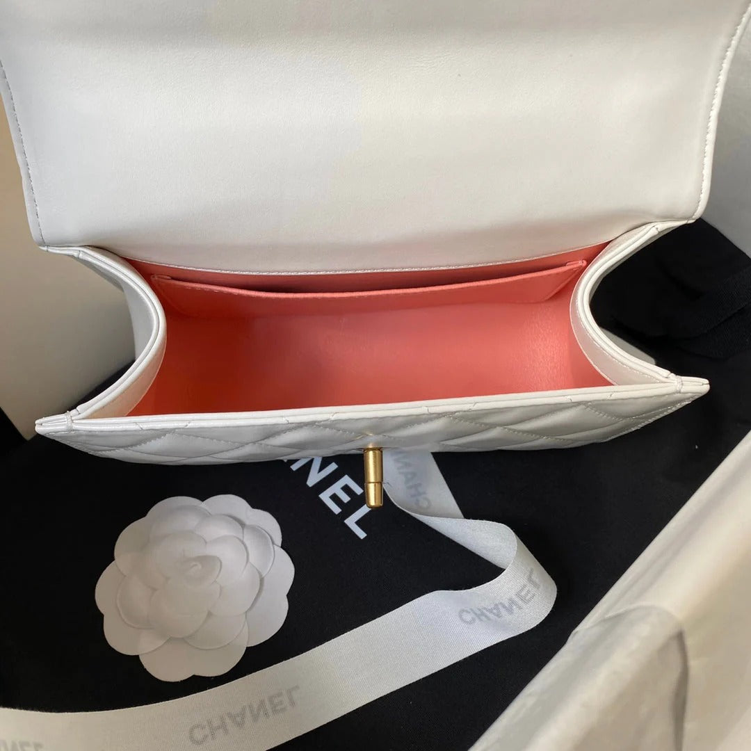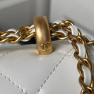 CHANEL 25S MINI FLAP BAG 19 IN WHITE CALFSKIN GOLD HARDWARE