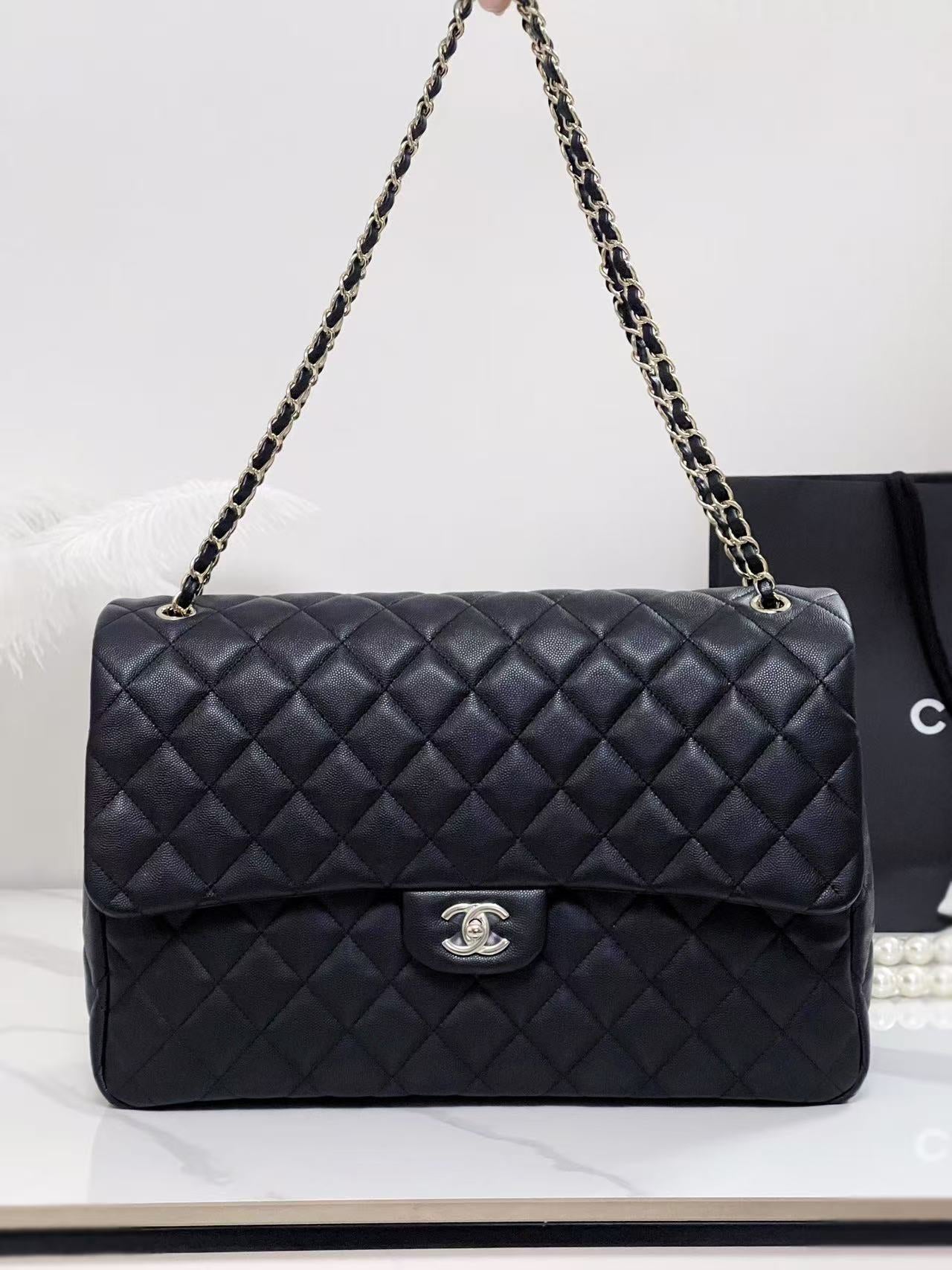 Chanel 40cm Bag Black Silver Lambskin