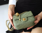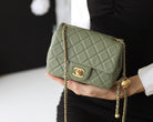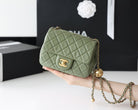 FLAP BAG 17CM KHAKI LAMBSKIN GOLD HARDWARE
