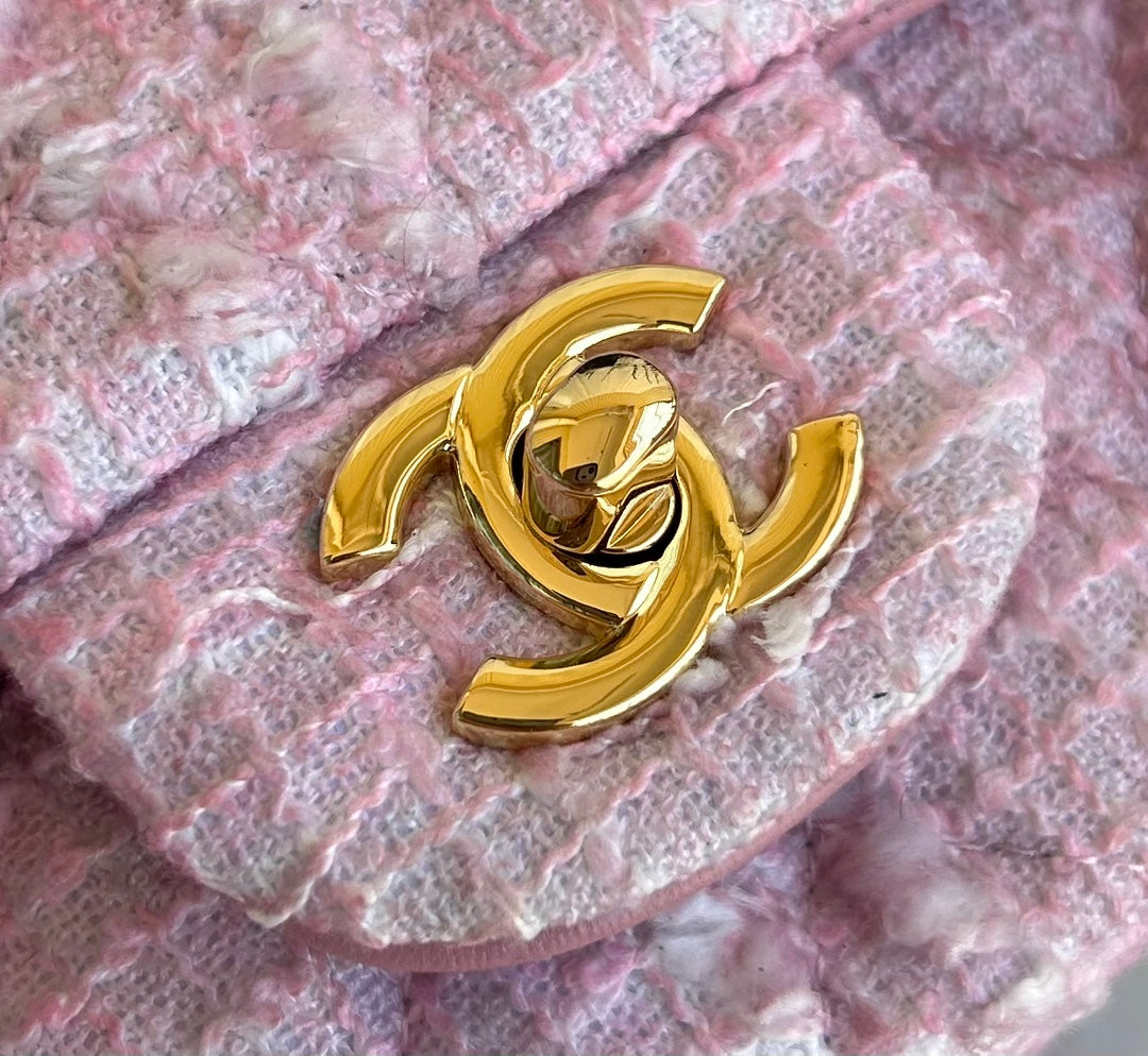 MINI FLAP BAG 20 IN LIGHT PINK TWEED GOLD HARDWARE