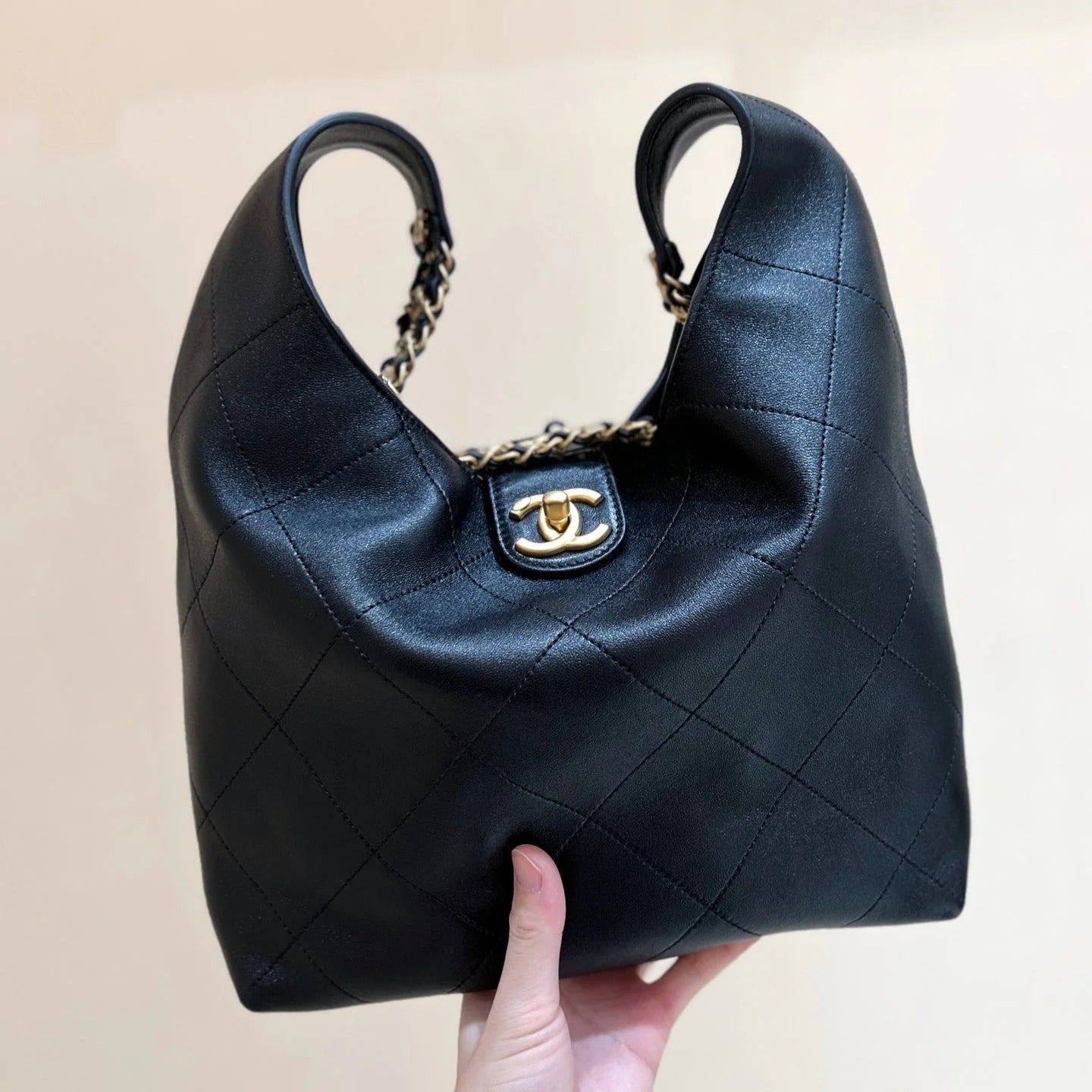 QUILTED SMALL HOBO BAG 27 IN BLACK LAMBSKIN GOLD HARDWARE