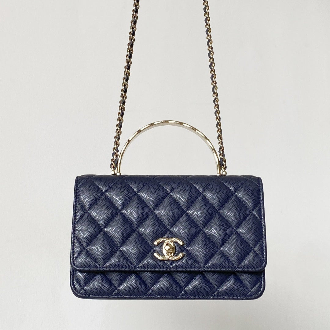 CC 25C Vanity Top Handle 21cm Black Grained Calfskin Light Gold Hardware