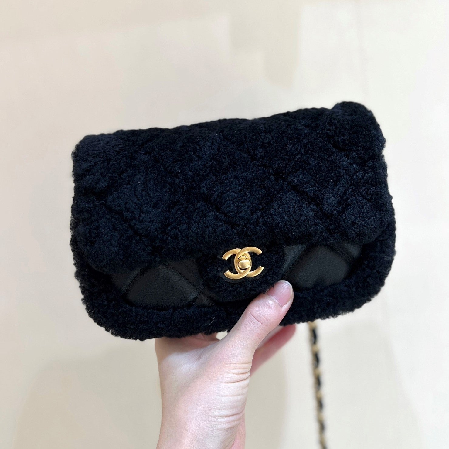 CC 24K Teddy Bear CF 23.5cm Black Lambskin & Fur Light GHW