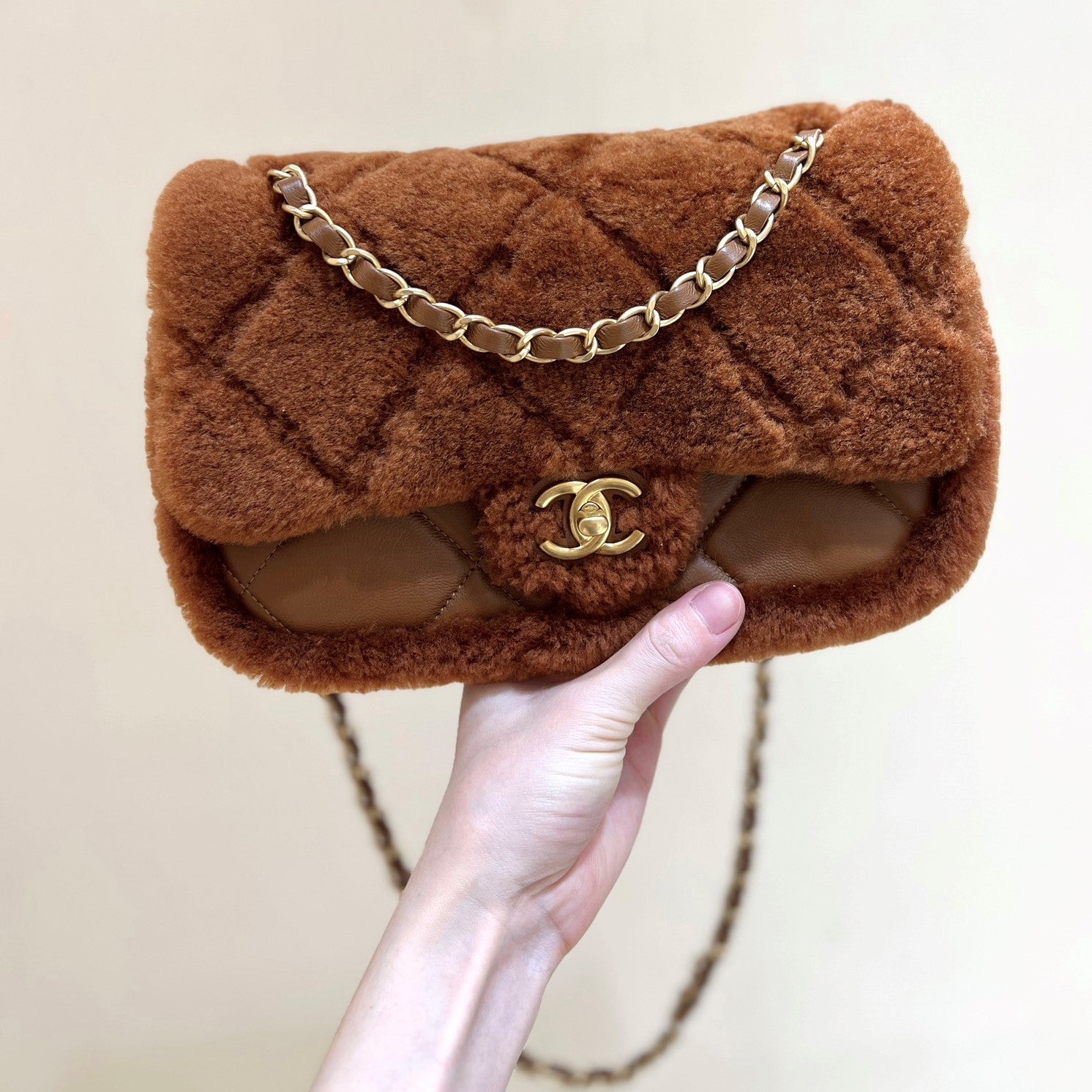 CC 24K Teddy Bear CF 18 cm Brown Lambskin & Fur Light GHW