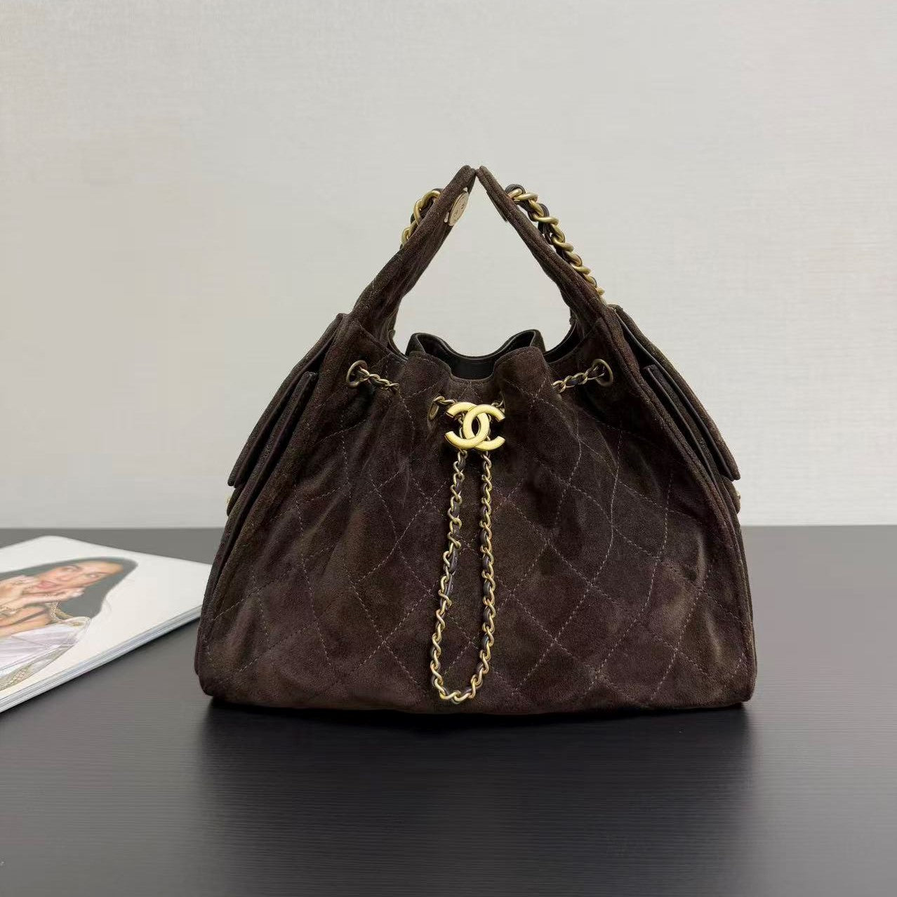 CC 25FW Hobo Bag 26cm Dark Brown Suede