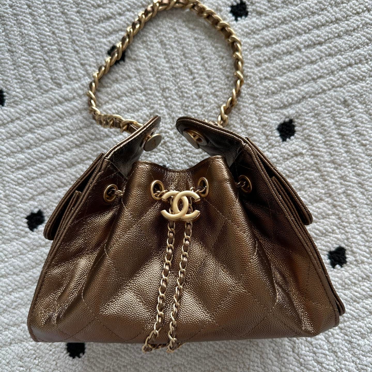 Chanel 25K Bowling Bag Black Gold Sheepskin 294981