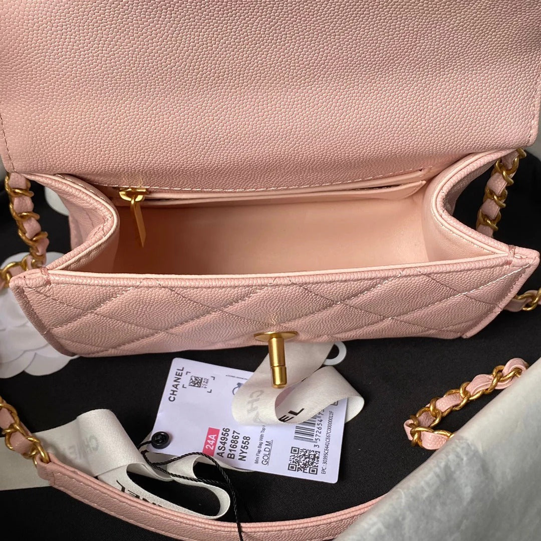 CC 25S FLAP BAG 21 CM IN LIGHT PINK GRAINED LAMBSKIN WITH TOP HANDLE