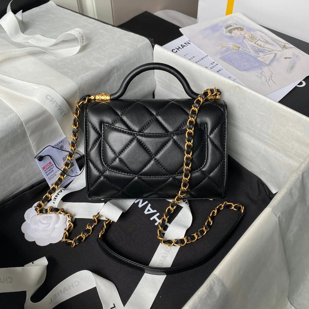CC 25S FLAP BAG 18 CM IN BLACK LAMBSKIN WITH TOP HANDLE
