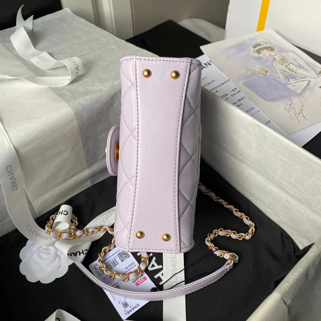 CC 25S FLAP BAG 21 CM IN LIGHT PURPLE LAMBSKIN WITH TOP HANDLE