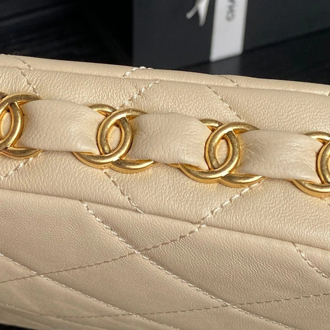 CC HOBO BAG 24 IN BEIGE CALFSKIN GOLD DOUBLE C THICK CHAIN
