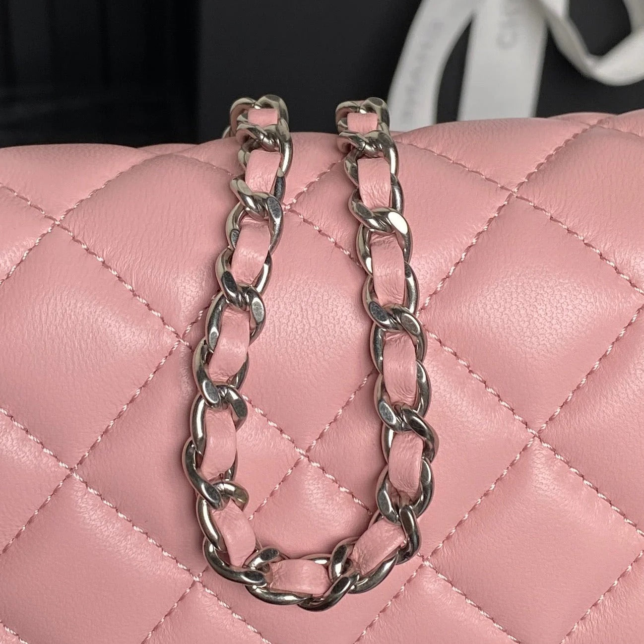 CHANEL 25S FLAP BAG 23 IN LIGHT PINK CALFSKIN SILVER HARDWARE