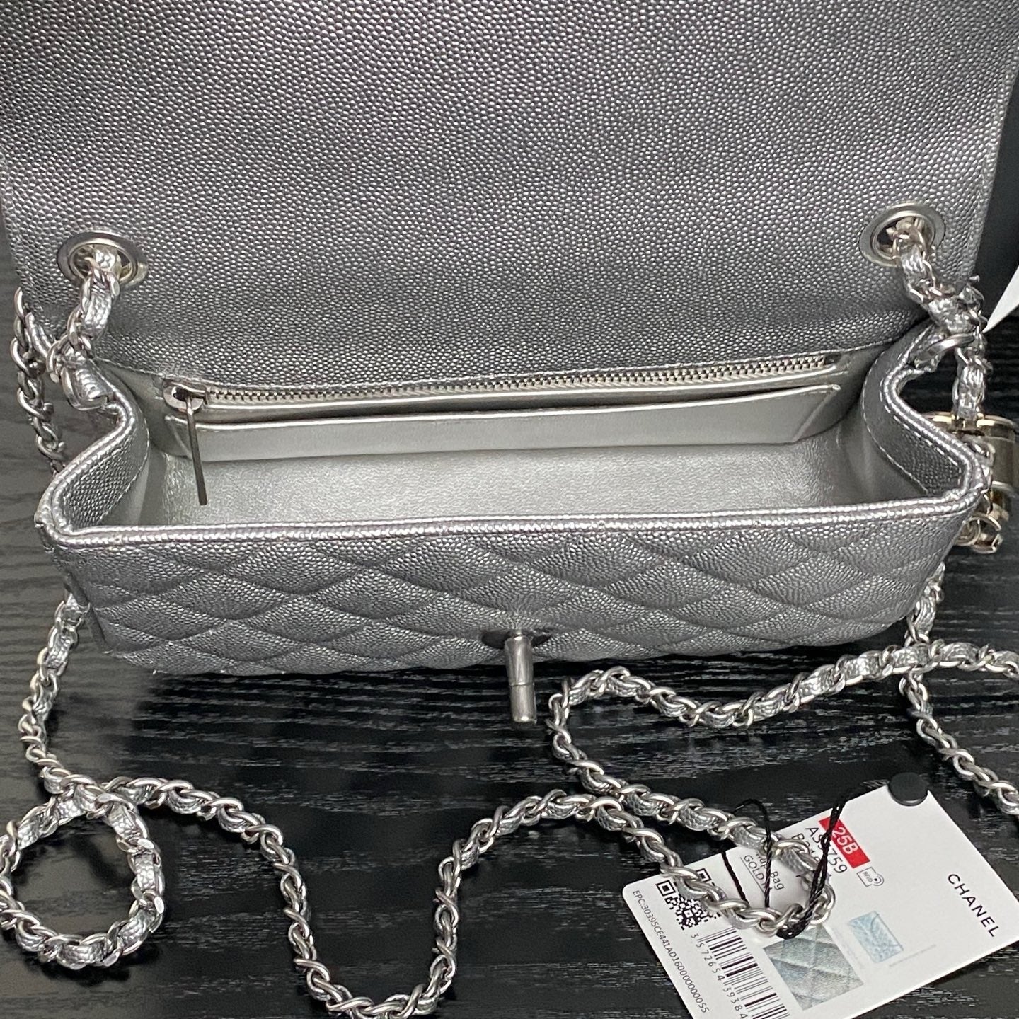 CHANEL 25S FLAP BAG 23 IN DARK GRAY CALFSKIN SILVER HARDWARE