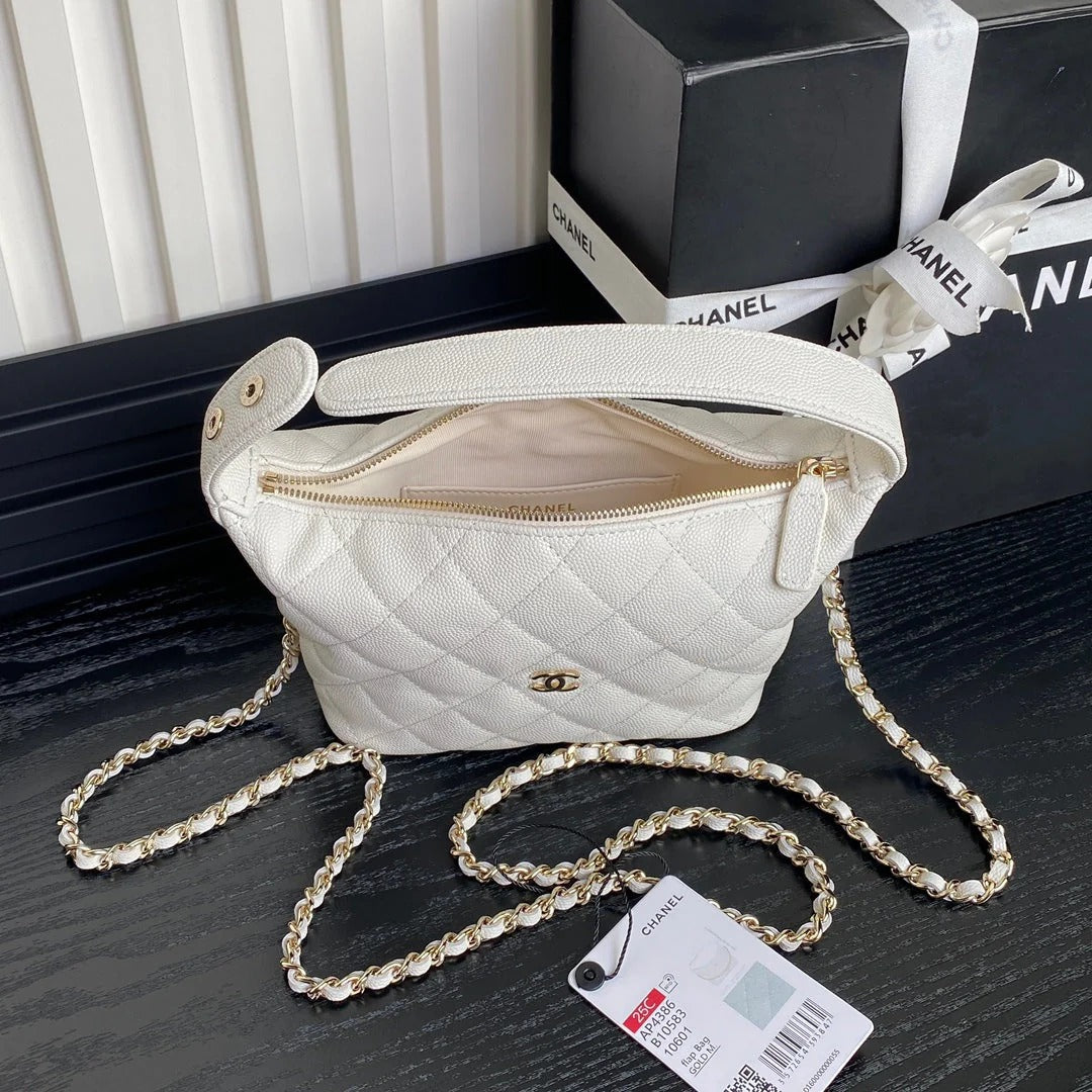 CC Mini Pocket Bucket Bag White Caviar Leather Light GHW 269199
