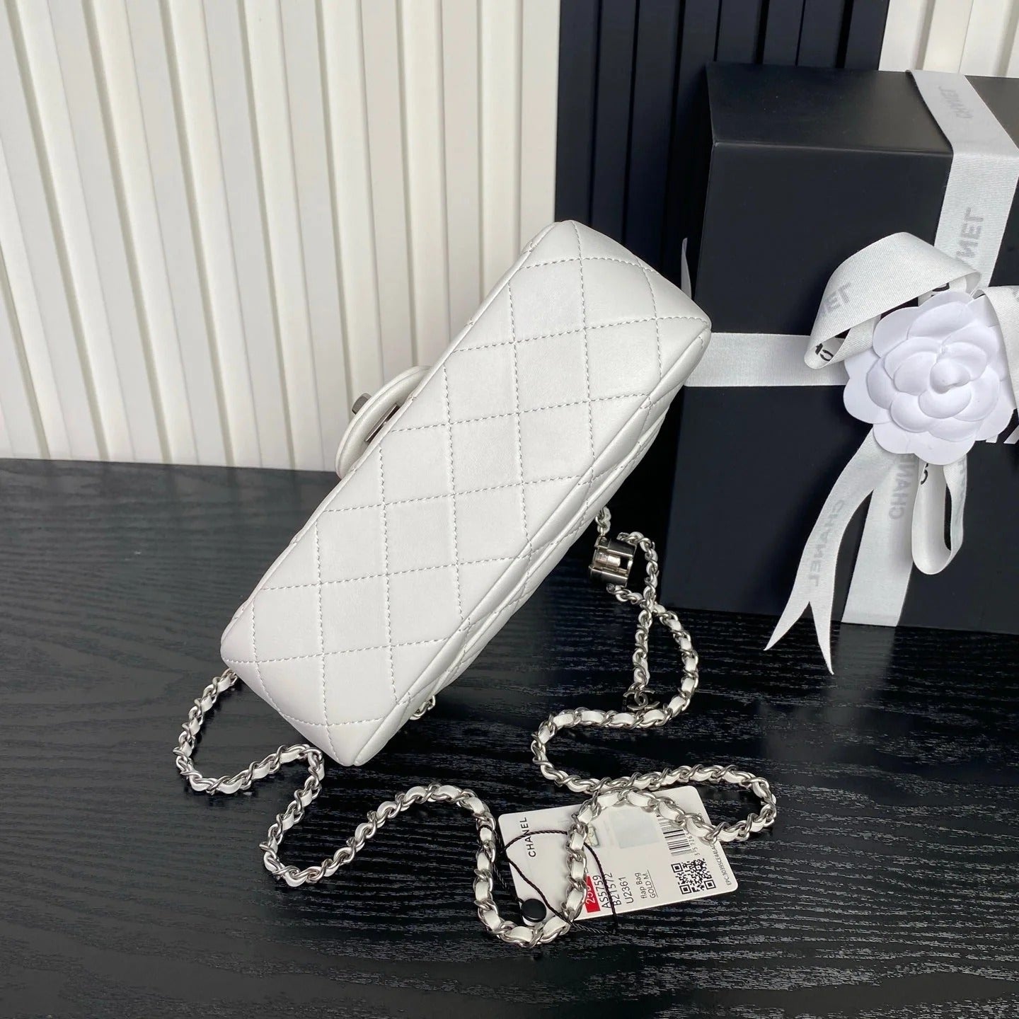 CHANEL 25S FLAP BAG 23 IN WHITE CALFSKIN SILVER HARDWARE