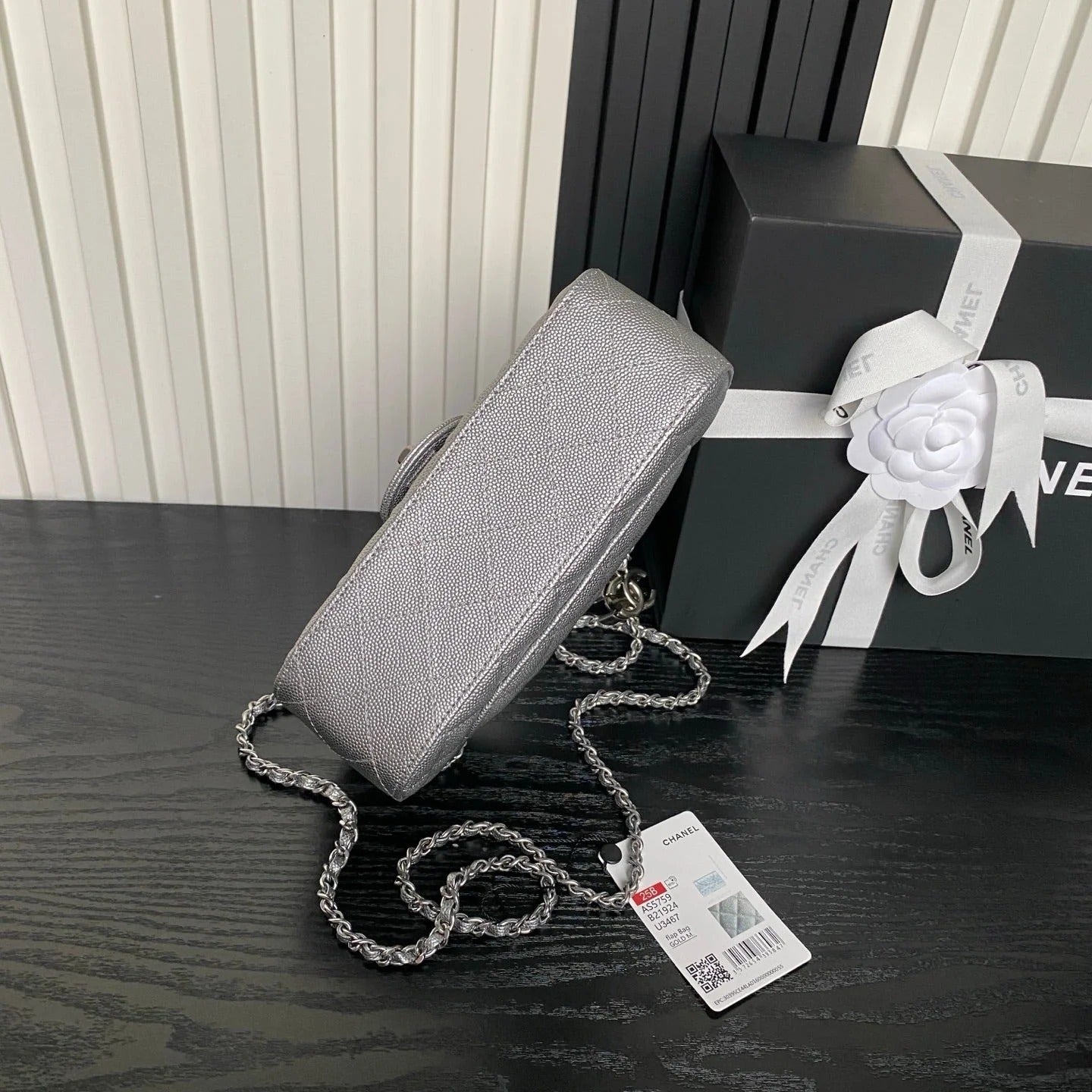 CHANEL 25S HOBO BAG 40 CM IN SILVER LAMBSKIN