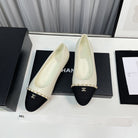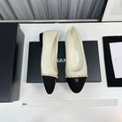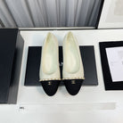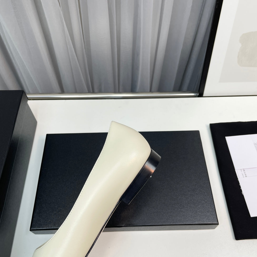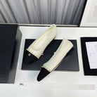 ballet flat cream lambskin black leather chain grosgrain