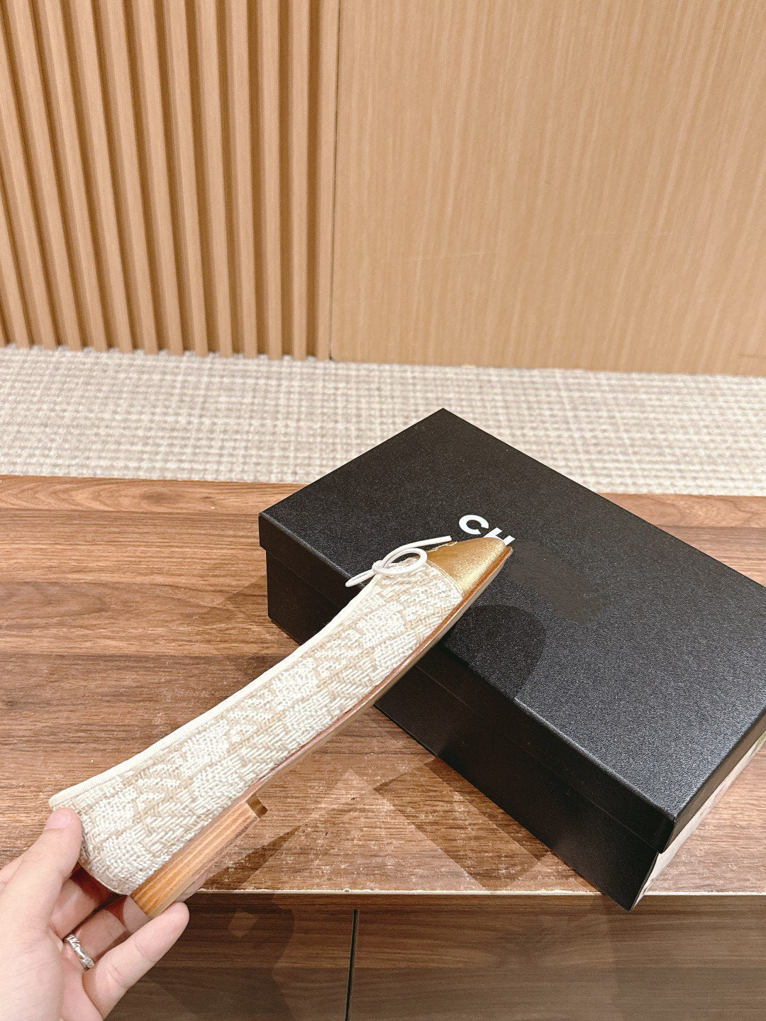 ballet flat grey textile gold metalic lambskin