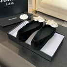 BALLET FLATS IN BLACK SUEDE WITH WHITE CAMELLIA
