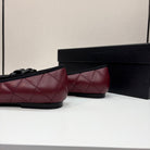 CC 25 Ballet Flat Flower Burgundy Quilted Calfskin