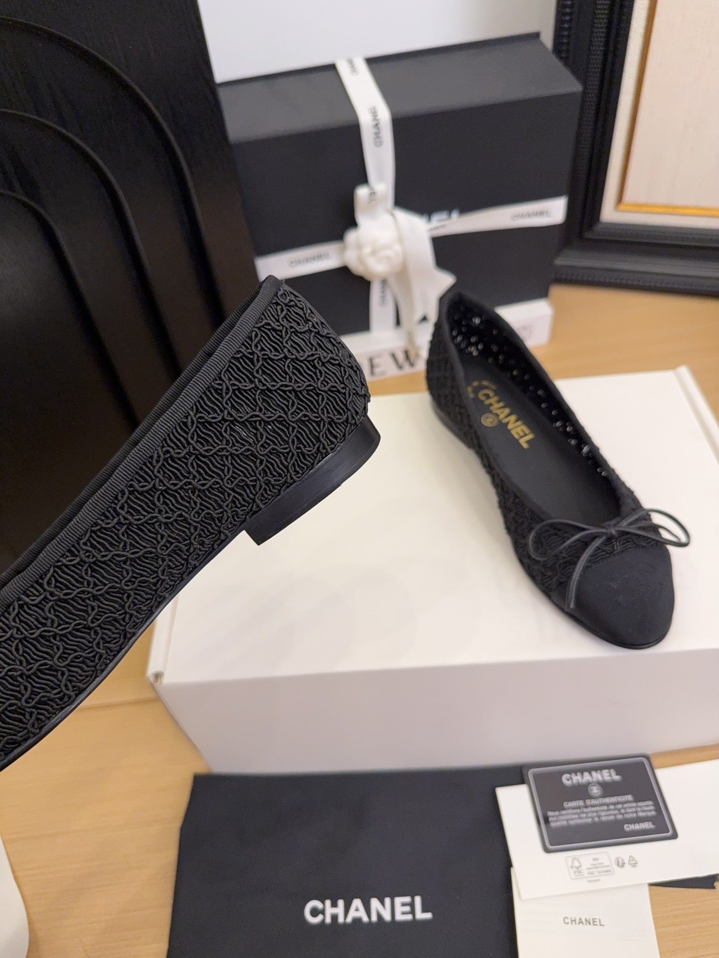 CC 25 Ballet Flats Black Mesh Fabric Black Grosgrain 277708