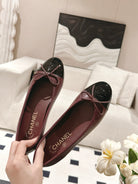 cc 25c ballet flat cross line pattern burgundy lambskin 237483