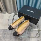 CC 25P Ballet Flat Light Pink Tweed Black Grosgrain