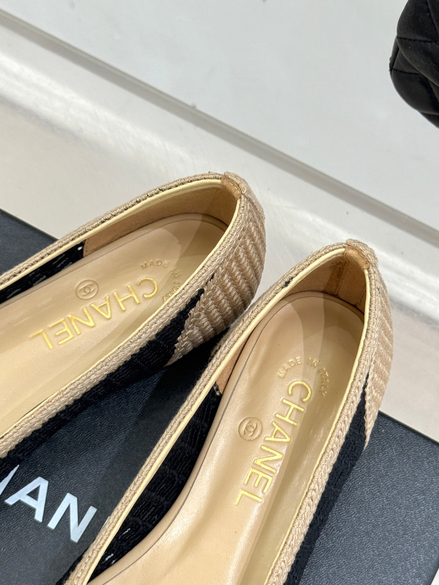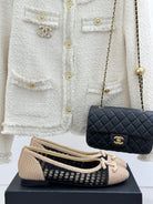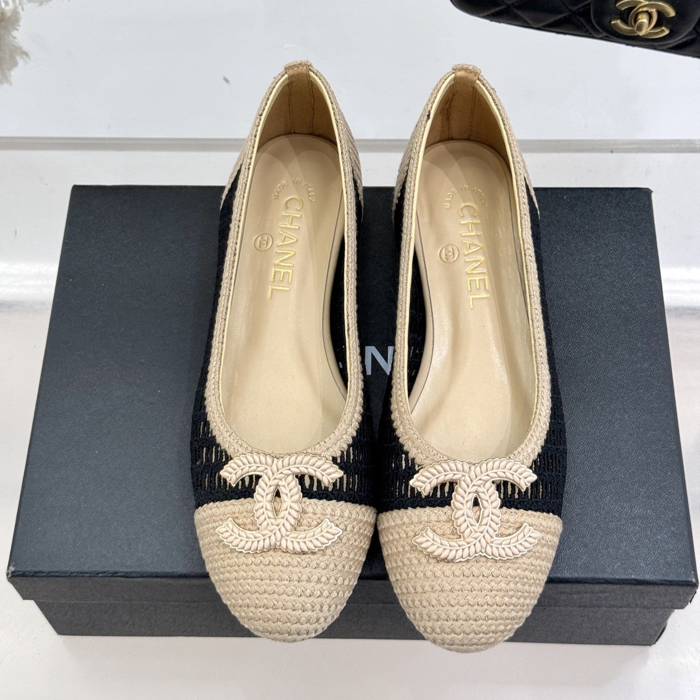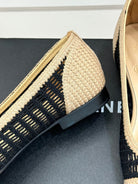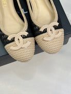 CC 25P Hollow Double C Ballet Flats 15mm Beige Black Raffia 265640
