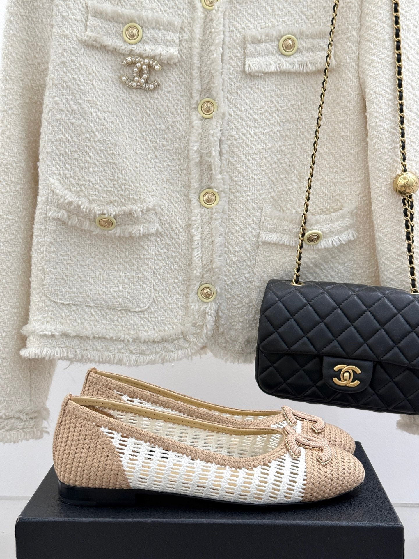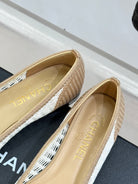 CC 25P Hollow Double C Ballet Flats 15mm Beige White Raffia 265641