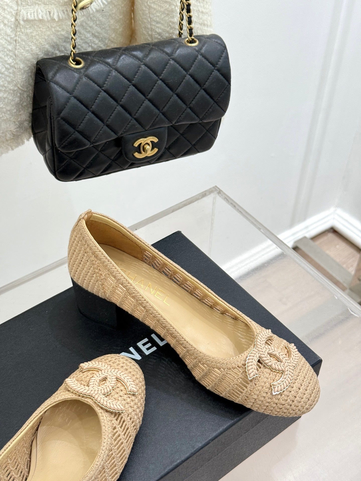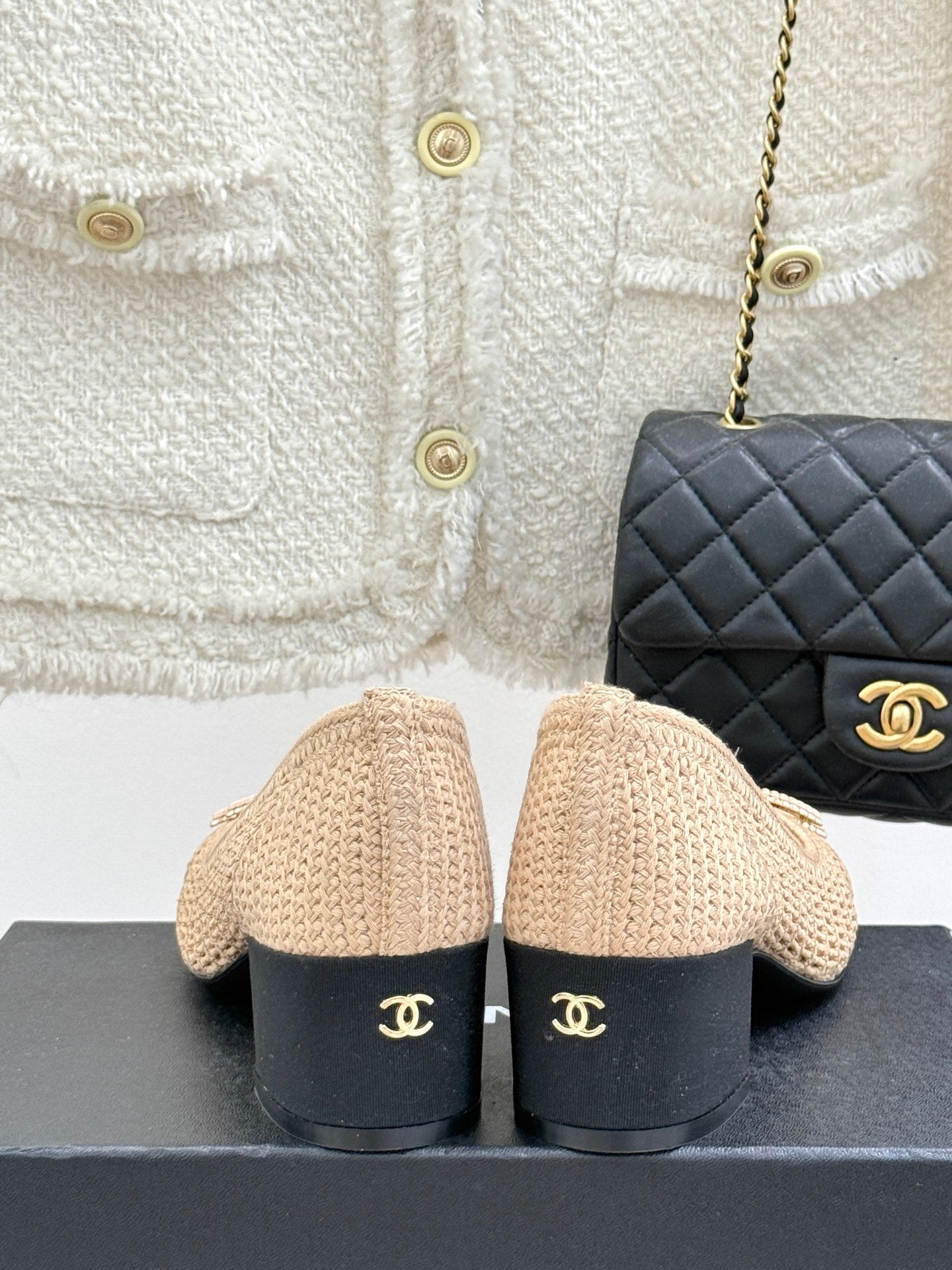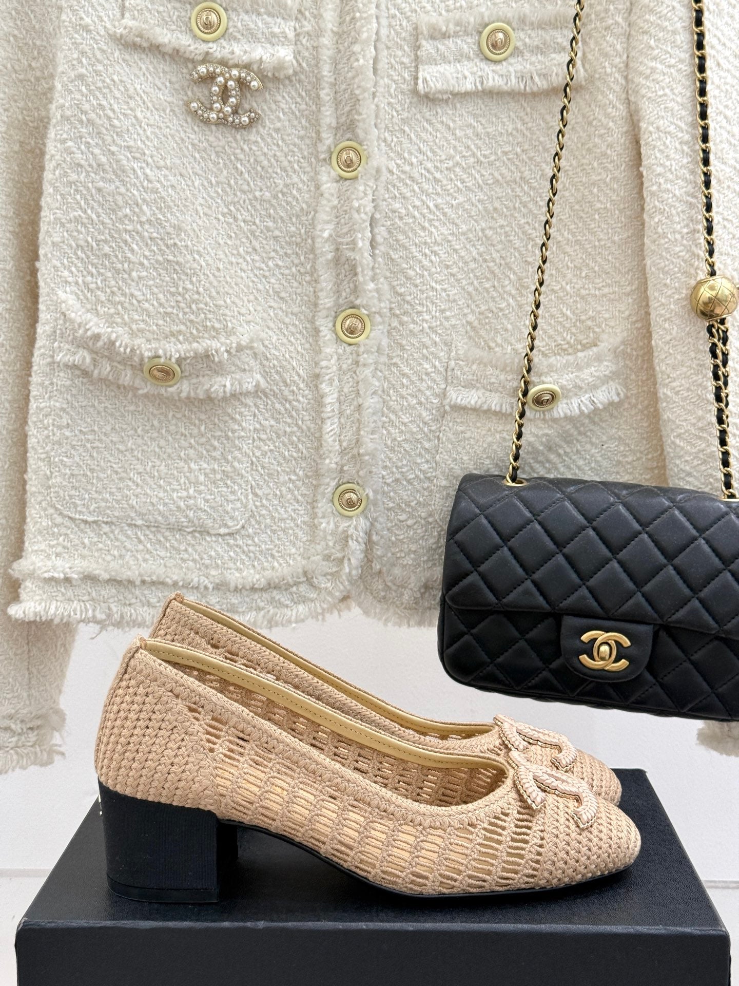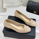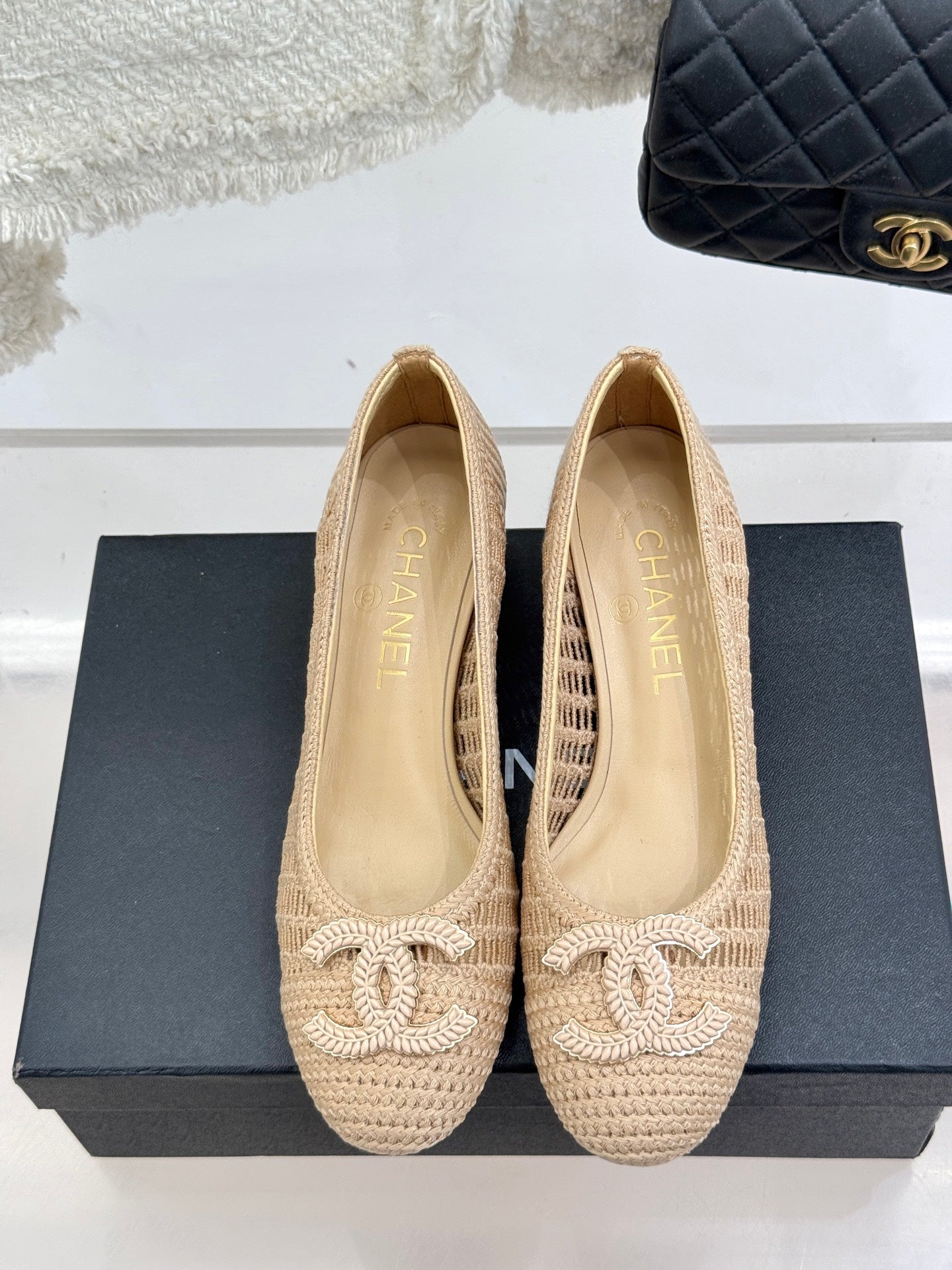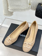 CC 25P Hollow Double C Ballet Flats 50mm Beige Raffia 265638
