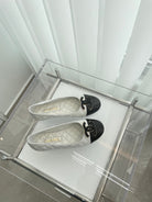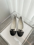 CC Ballet Flats 10mm White Black Quilted Lambskin
