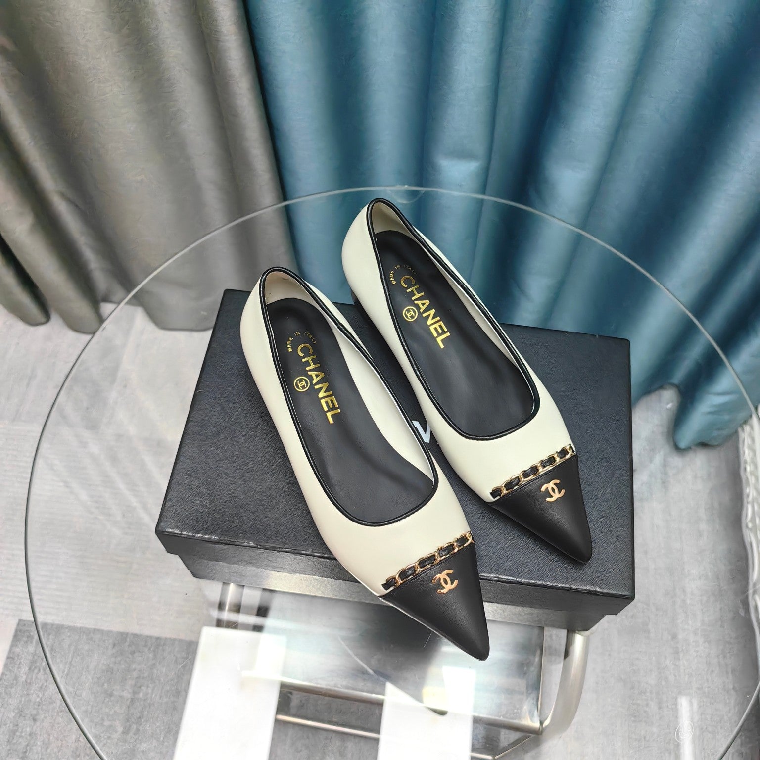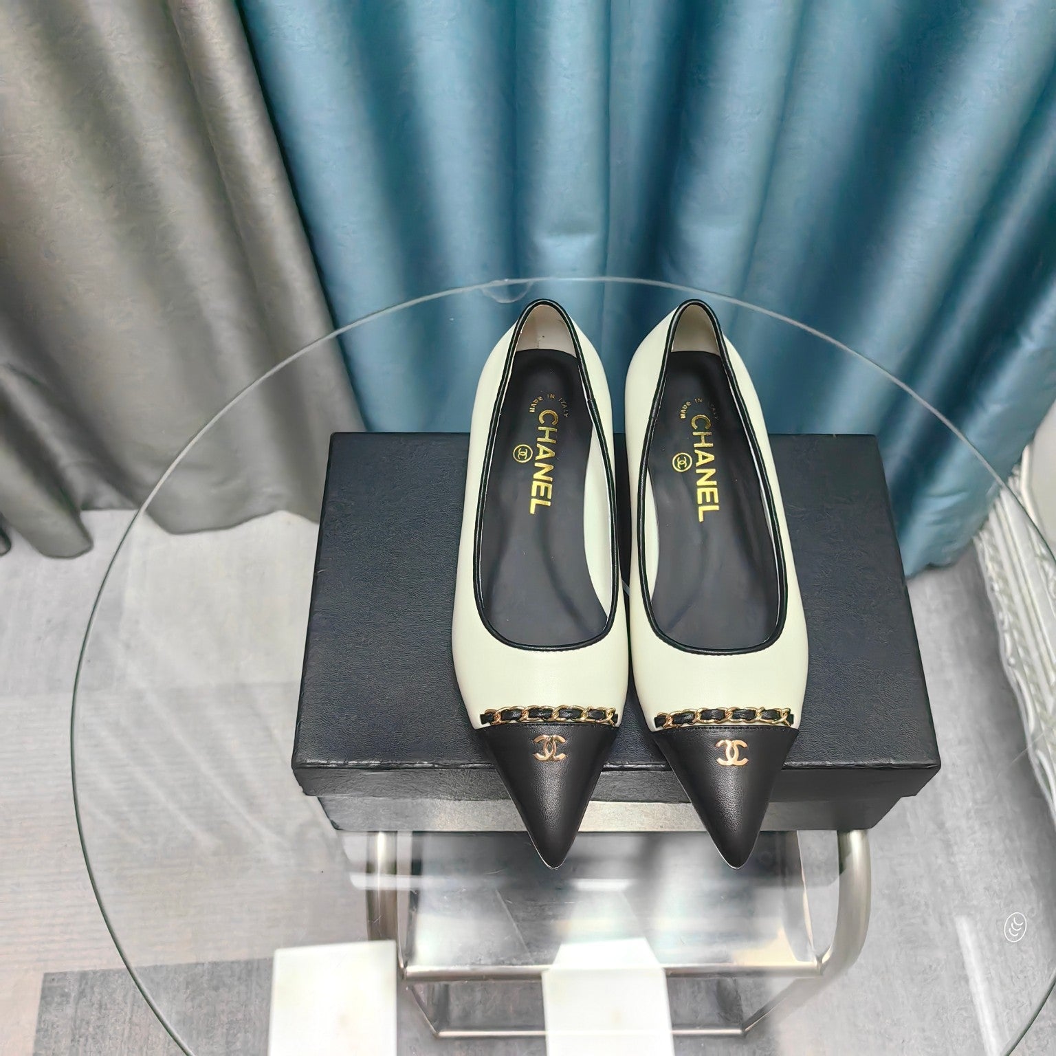 CC Ballet Flats 10mm White Black Quilted Lambskin