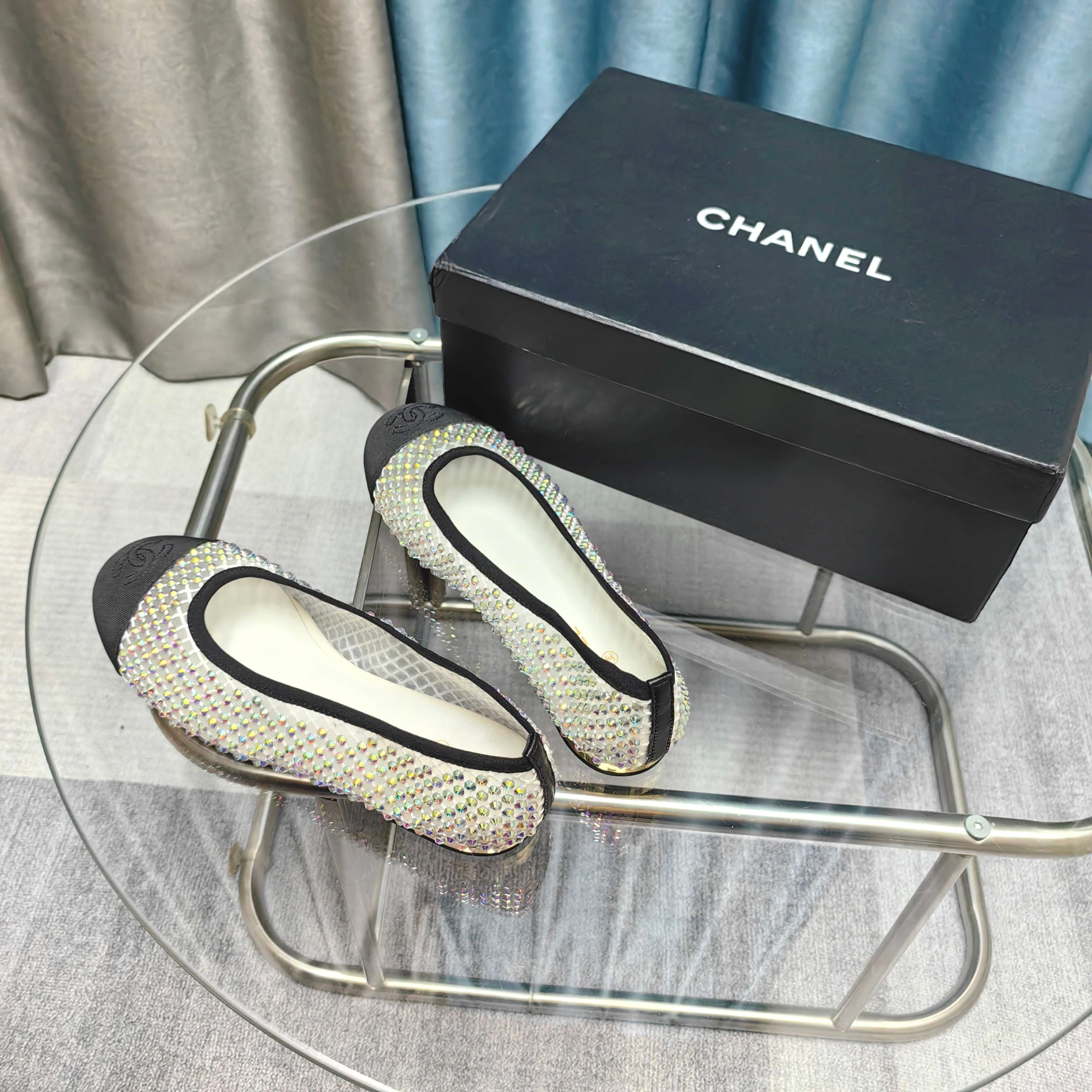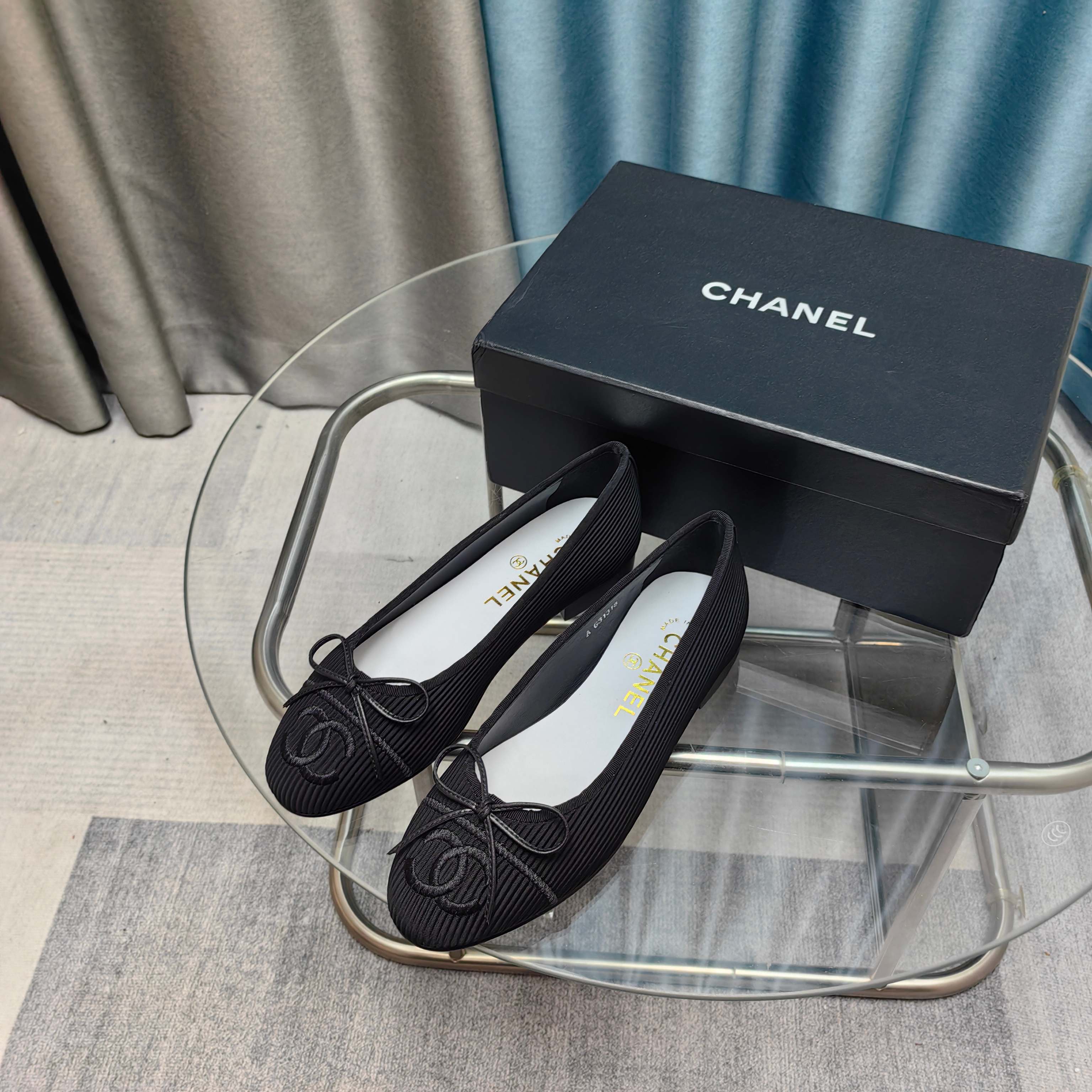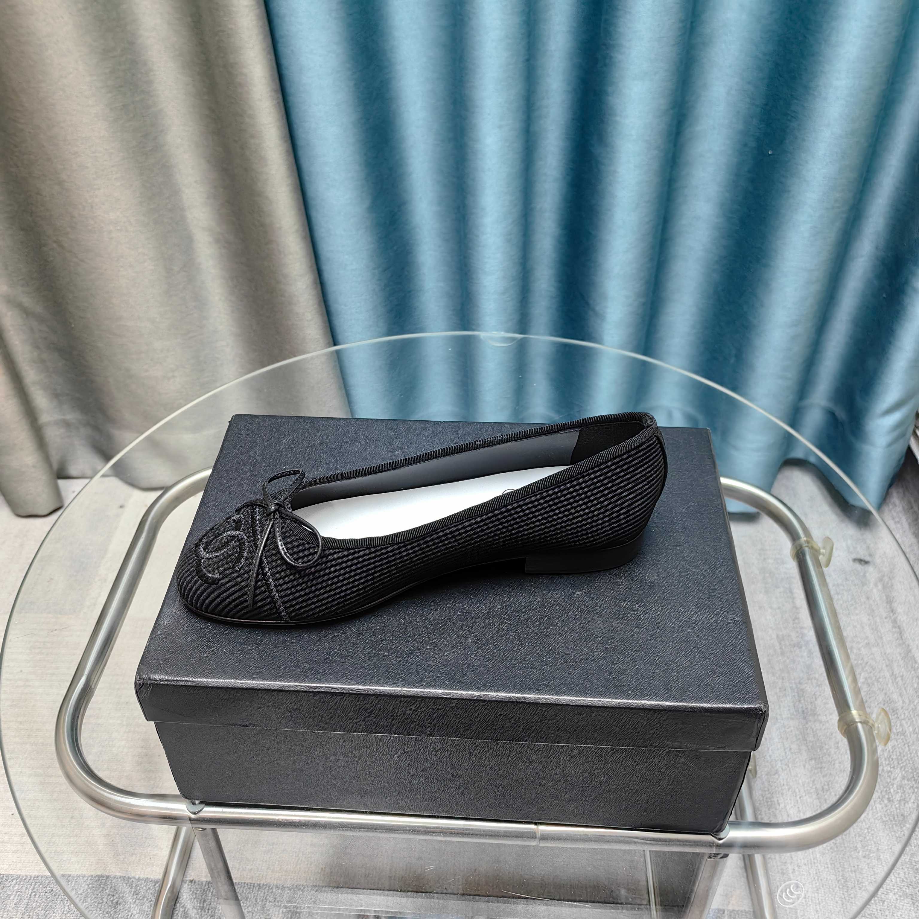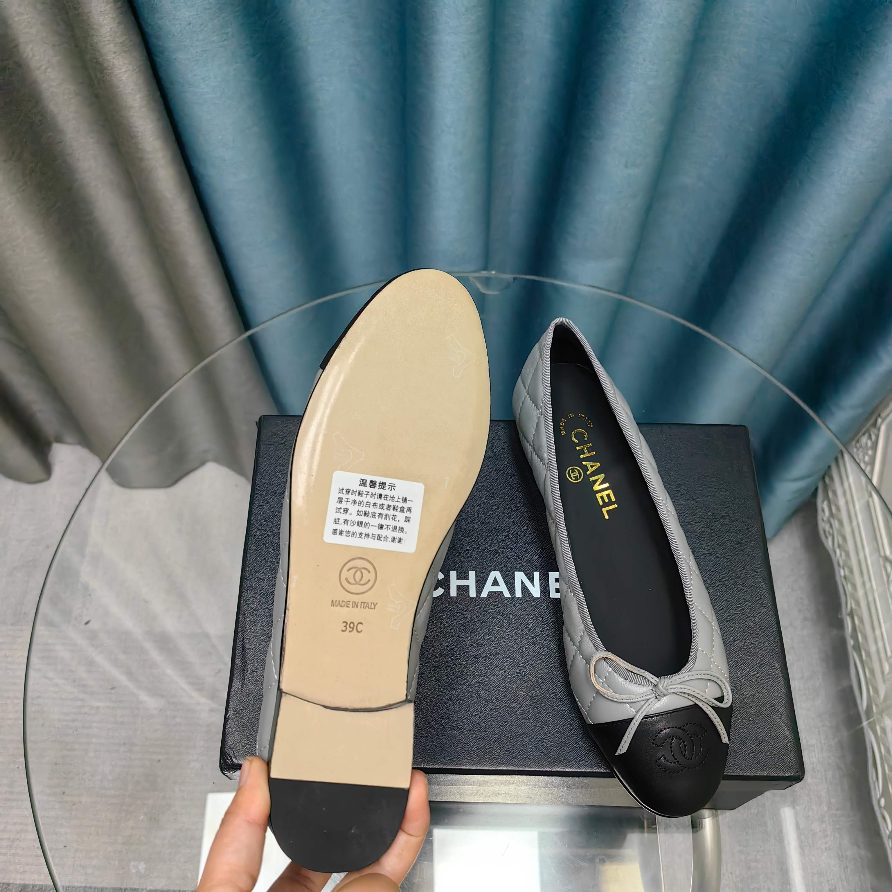 CC 25P Ballet Flat Grey Black Calfskin